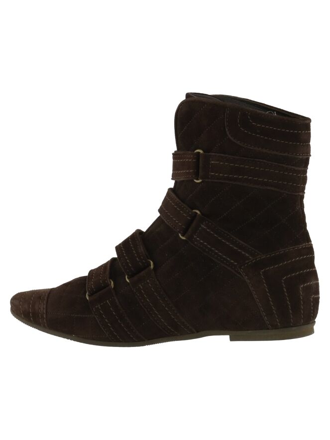 Een gewatteerd laarsje van AGL (Attilio Giusti Leombruni) in een makka bruine kleur. De sluiting van het laarsje is met 4 klittebanden. De binnenkant is met leder gevoerd.