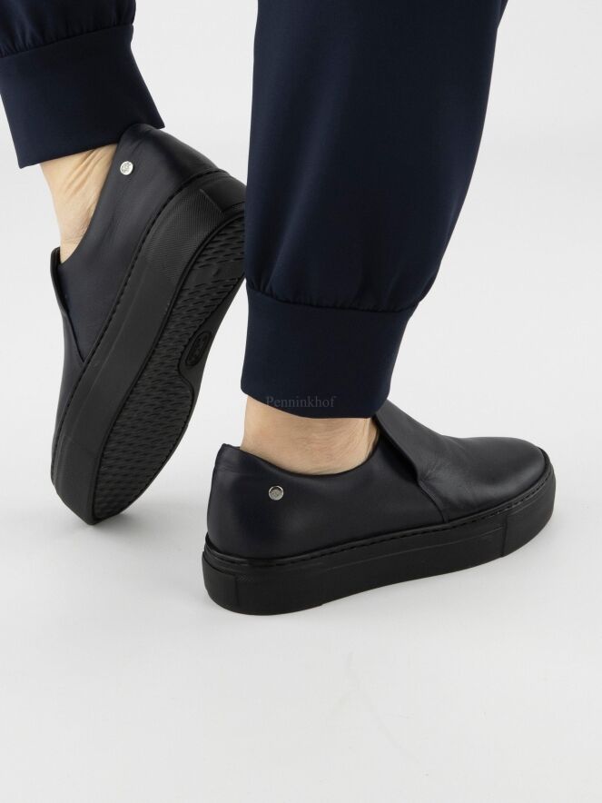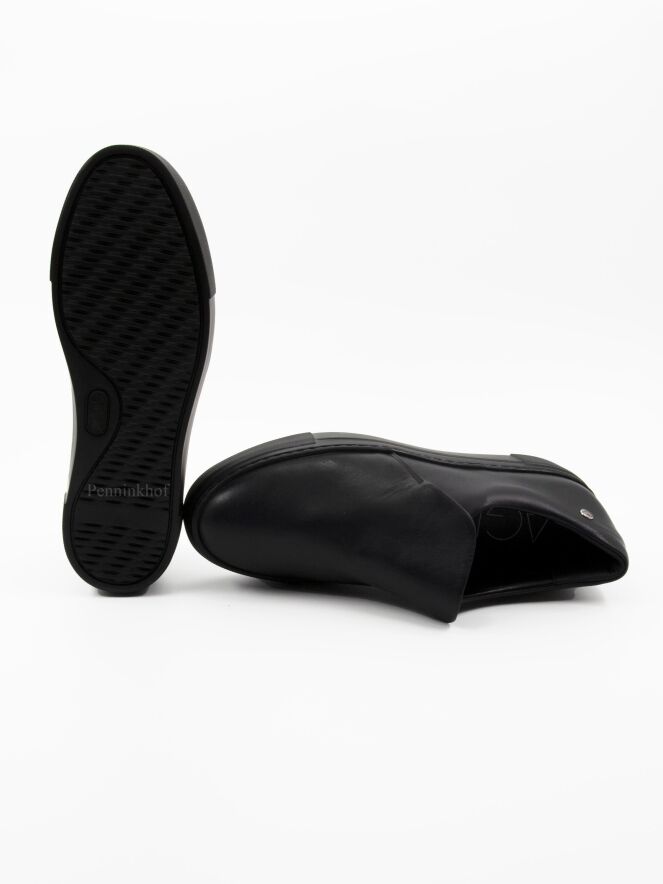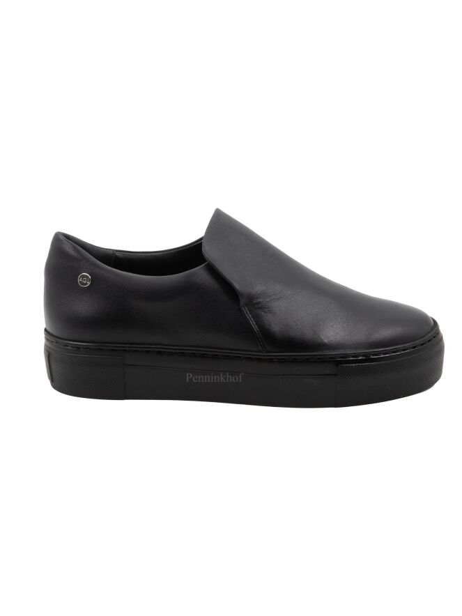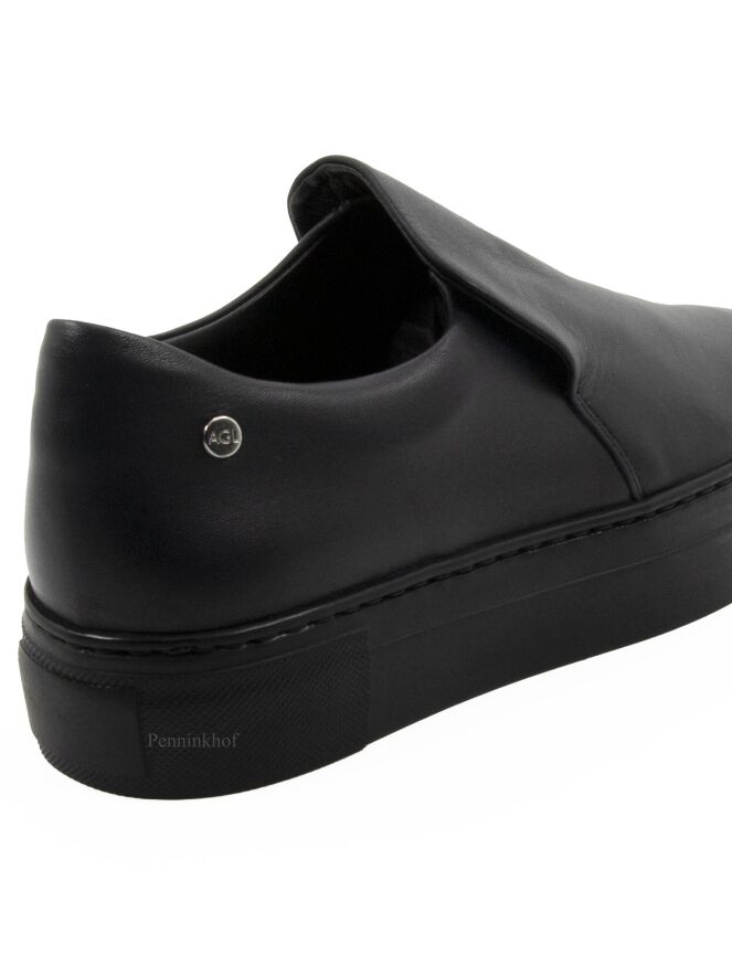 Een luxe instapper van AGL in een zacht leder in de kleur zwart. De schoen heeft een ronde neus. De instapper heeft een plateauzool in dezelfde kleur als het leder en de binnenkant is gevoerd.