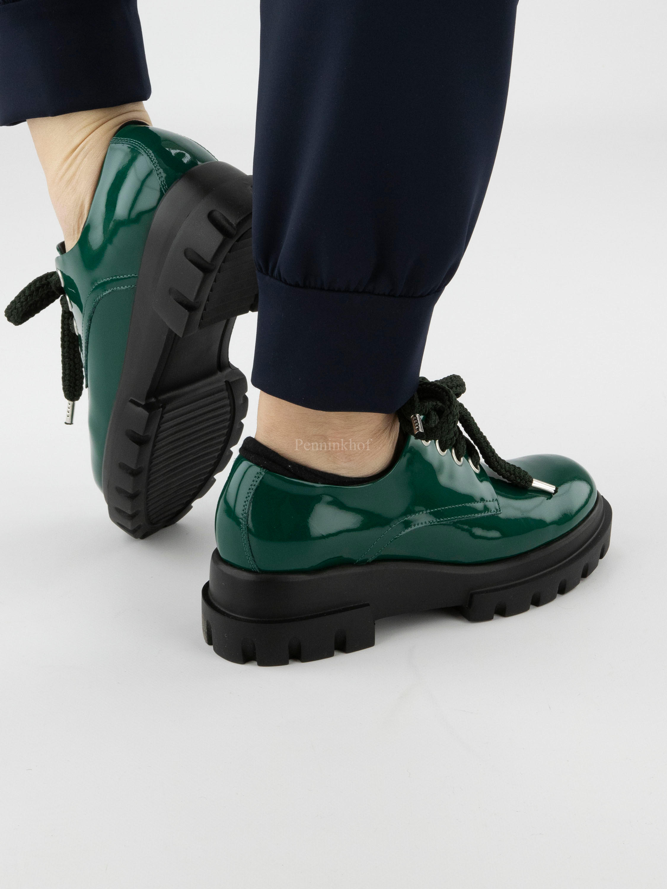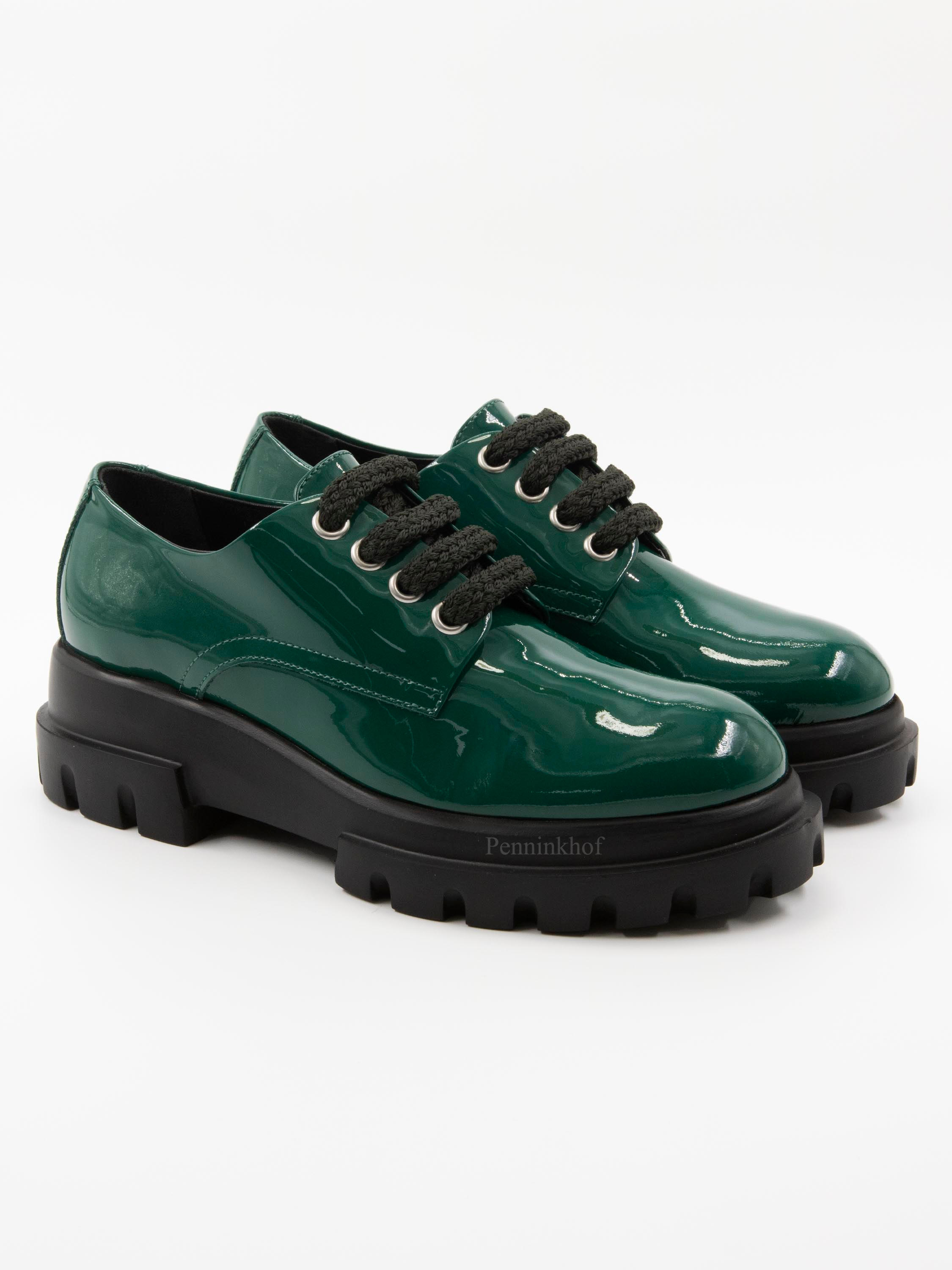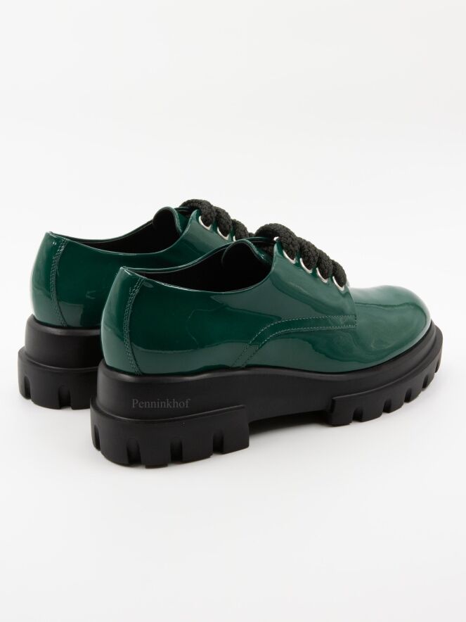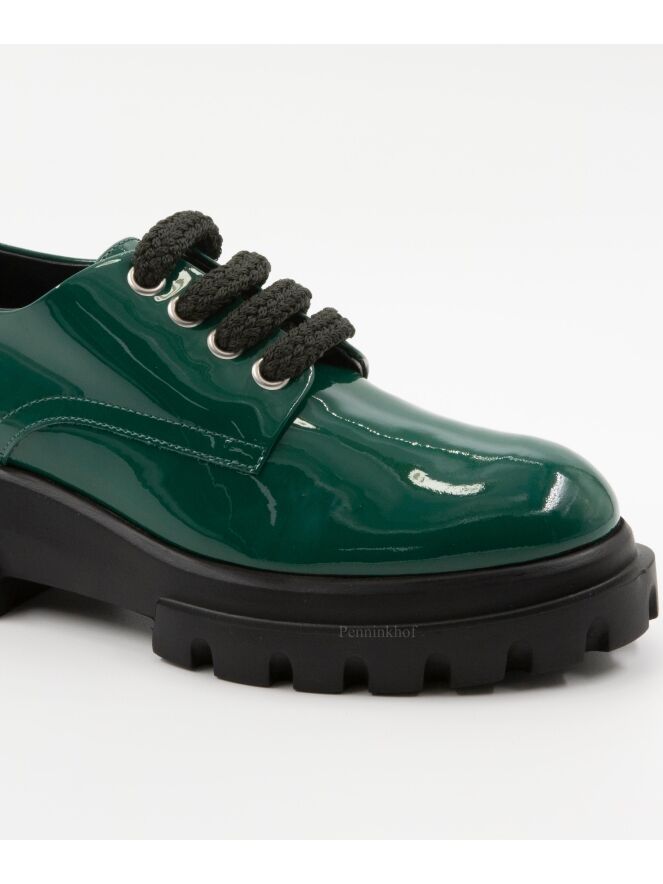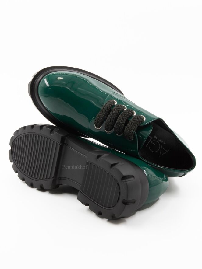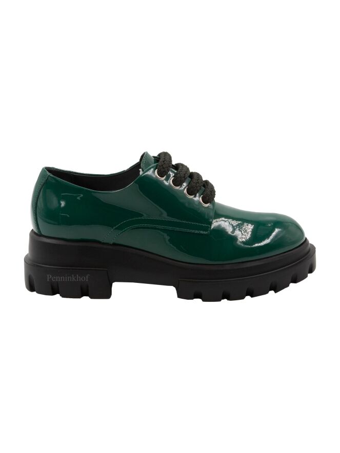 Een instapper van AGL In lakleder in de kleur groen. De designzool is in de kleur zwart. De binnenkant is met leder gevoerd.
