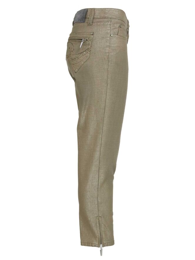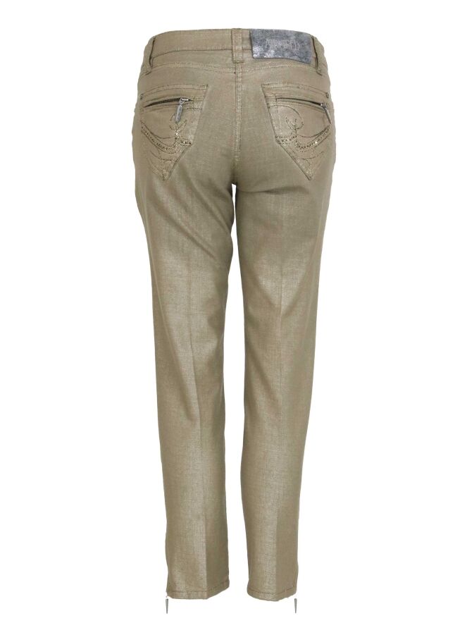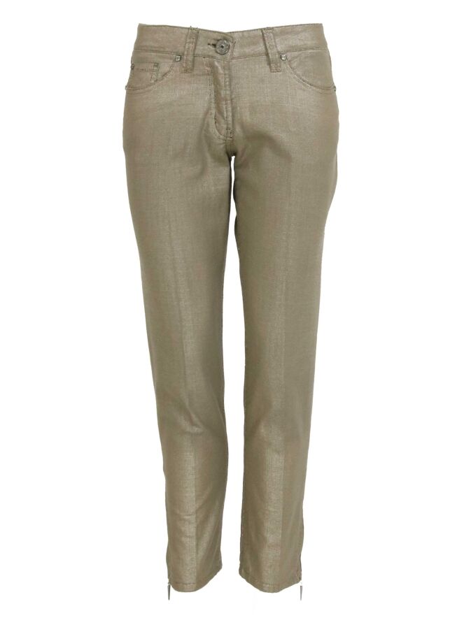 Een jeans van Airfield in de kleur goud. De jeans is in een 5 pocket model en mag op 30 graden worden gewassen.