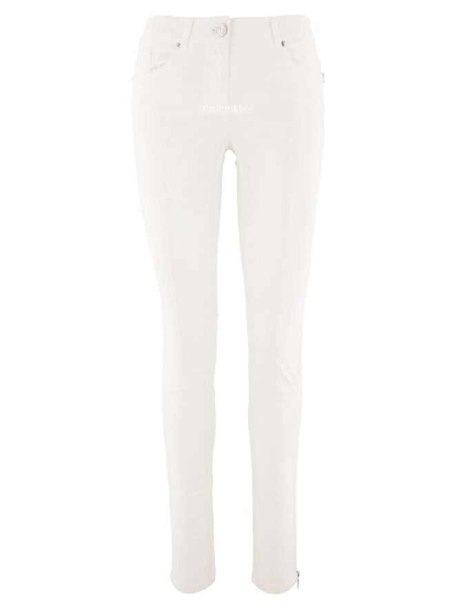 Een broek van het merk Airfield in de kleur wit. De broek is in een 5 - pocket model en heeft aan de onderzijde van de pijpen een rits. De broek is slank gesneden en mag op 30 graden worden gewassen.