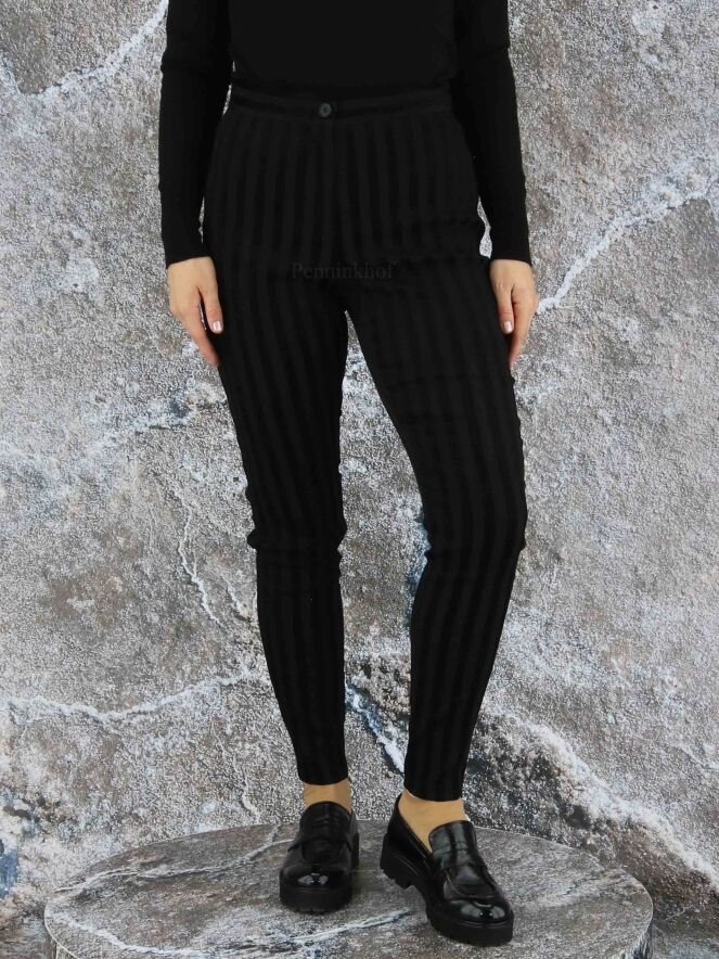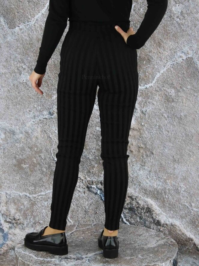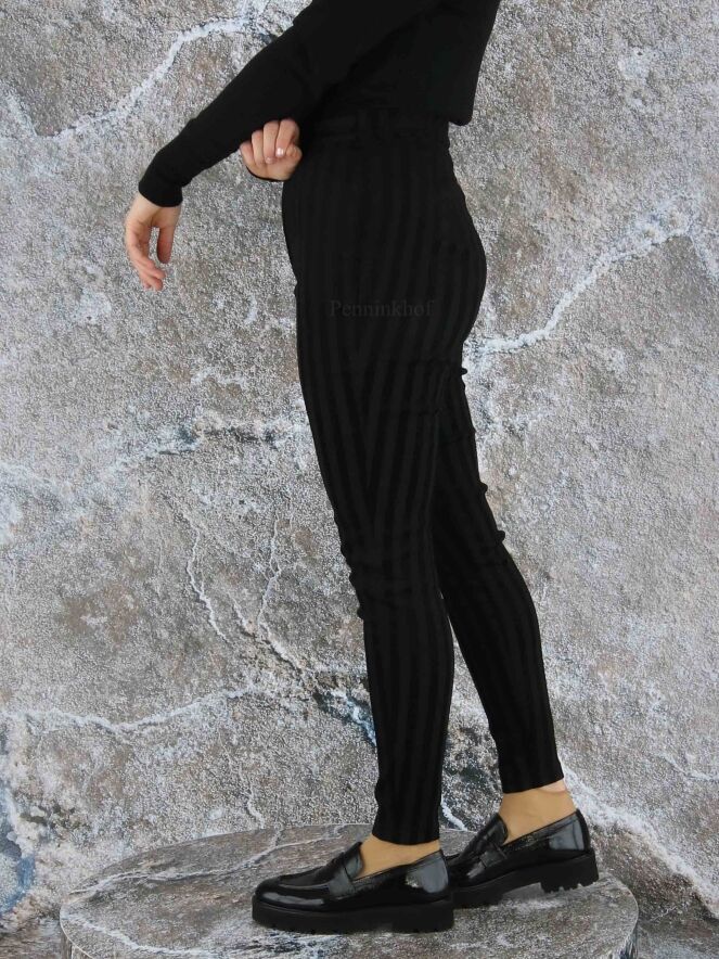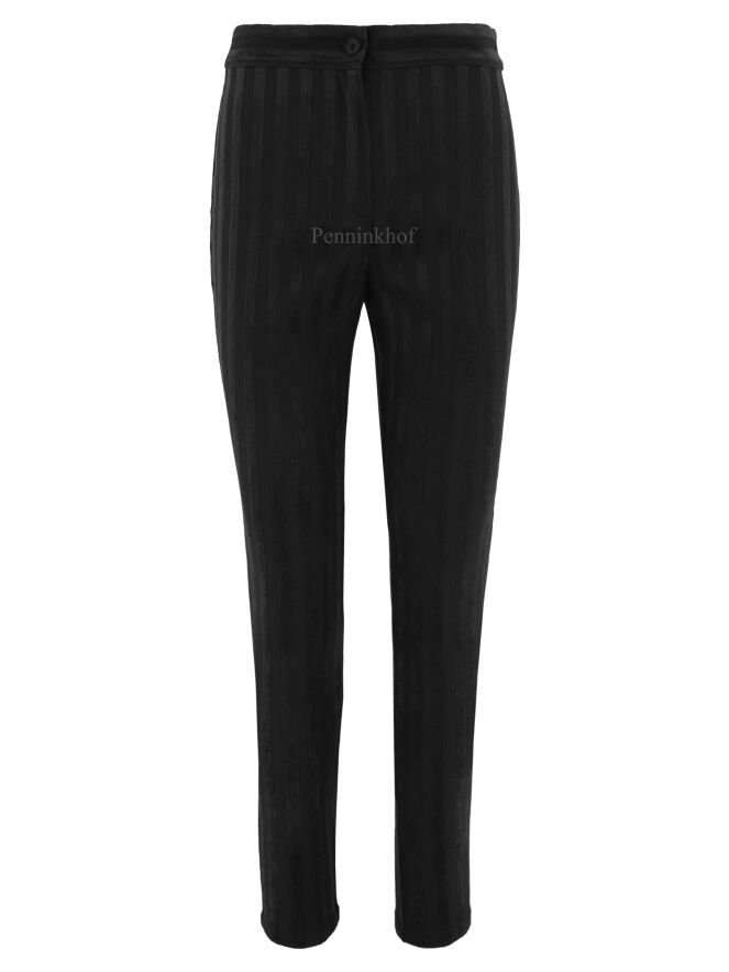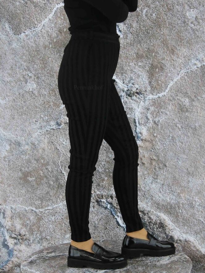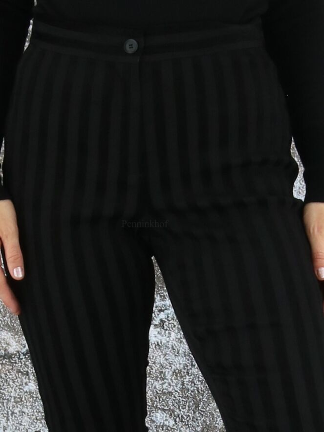 Een broek van Annette Görtz in een verticaal streeppatroon in de kleur zwart. Deze broek mag op 30 graden worden gewassen.