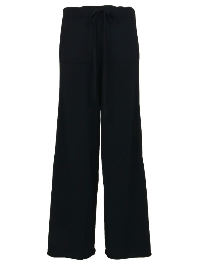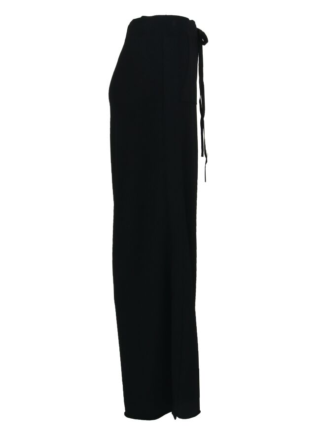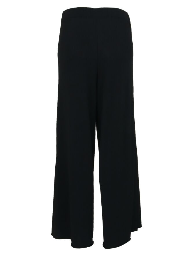 Eeen zeer wijde luxe broek van Annette Görtz in de kleur zwart. In de taille is een brede elastieken band. Onder de taille zijn 2 zakken. Aan de zijkanten is een brede geribbelde bies. Deze broek mag op 30 graden worden gewassen.