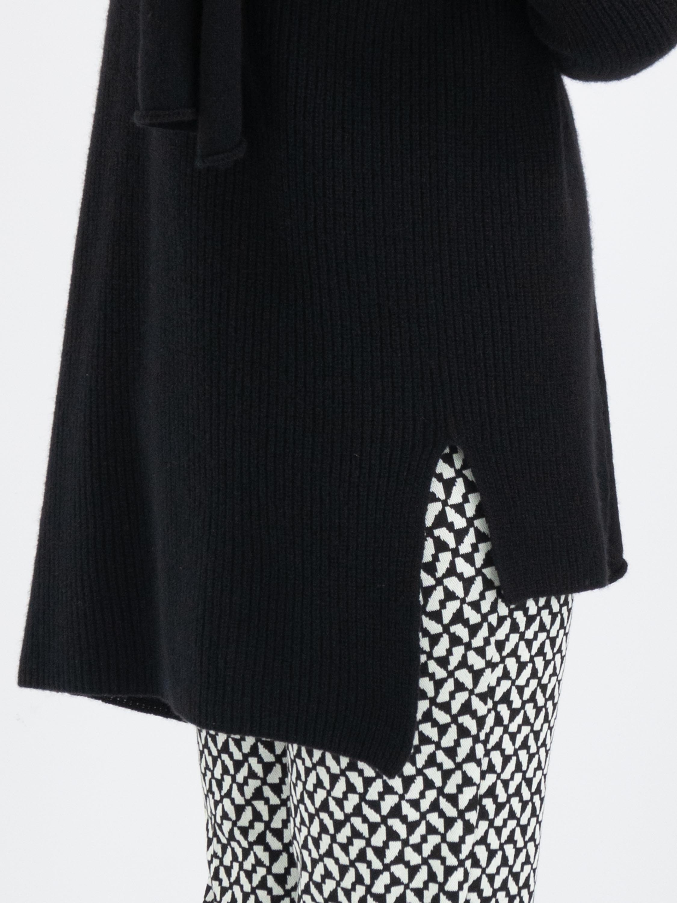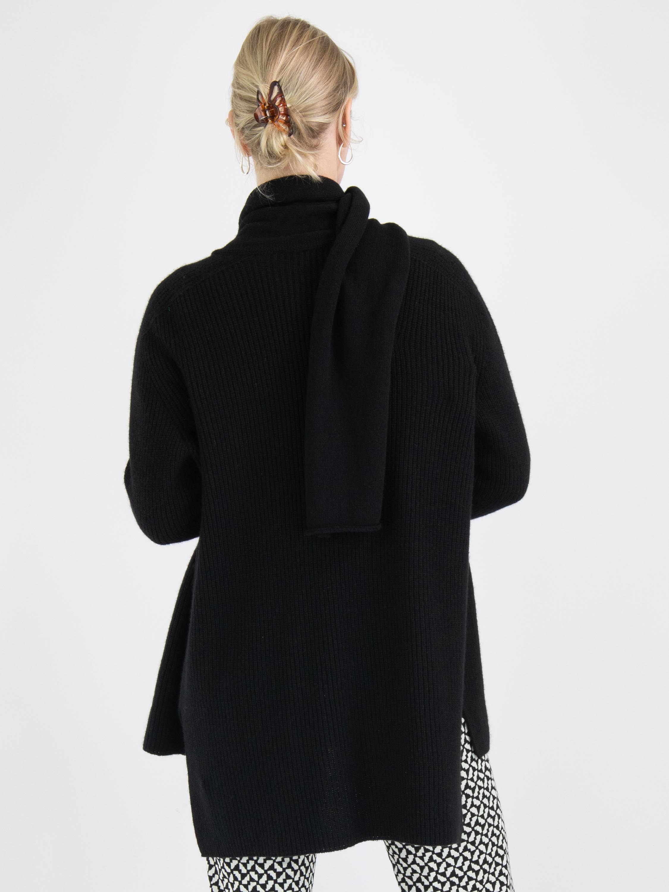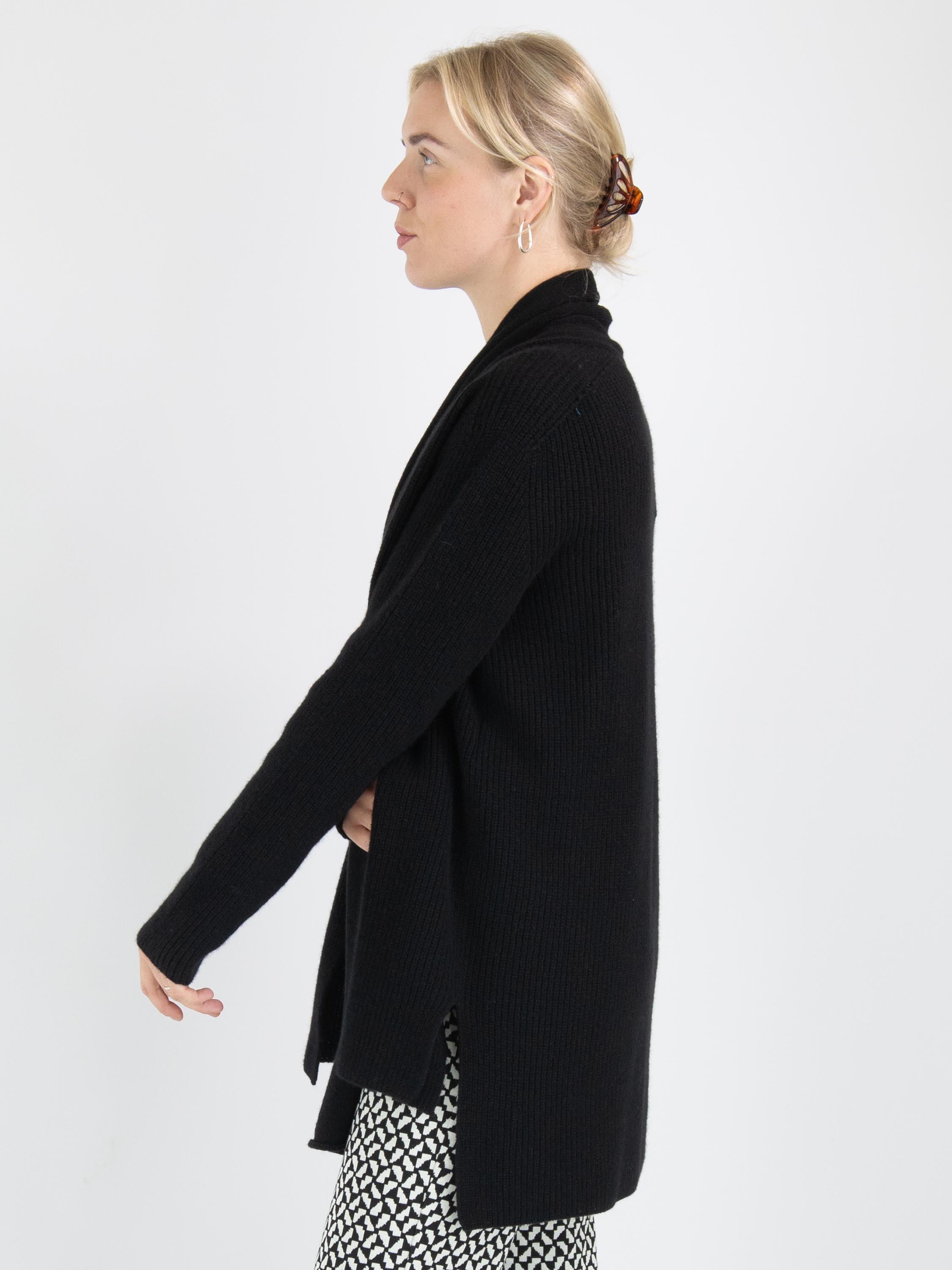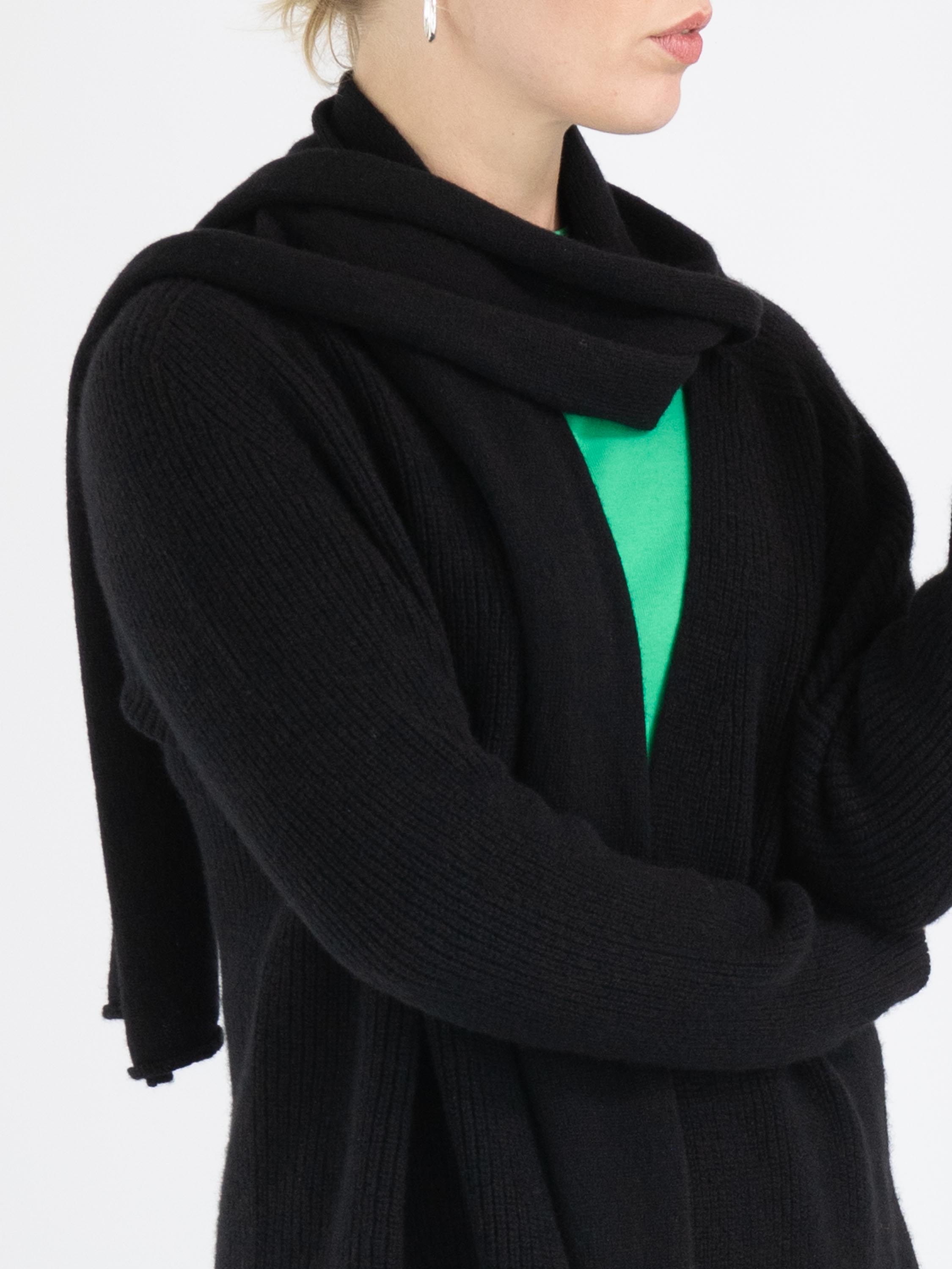Een luxe gemêleerd vest van Annette Görtz in de kleur zwart. Het vest heeft geen sluiting en de sjaalkraag is vanaf de schouderinzet los van het vest. Dit vest mag met de hand worden gewassen.