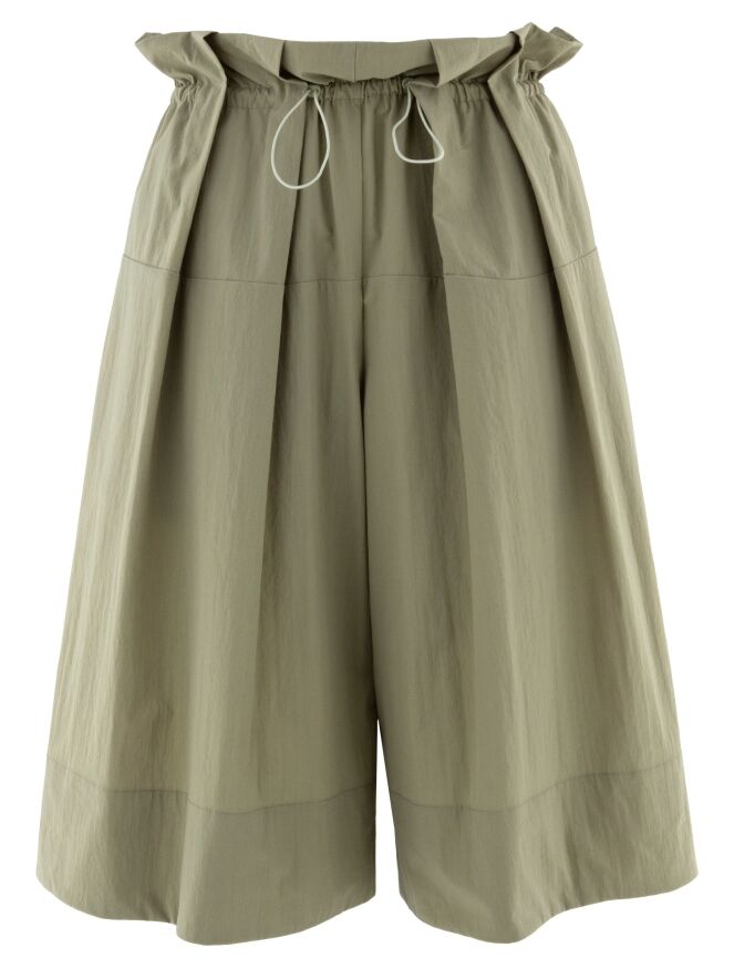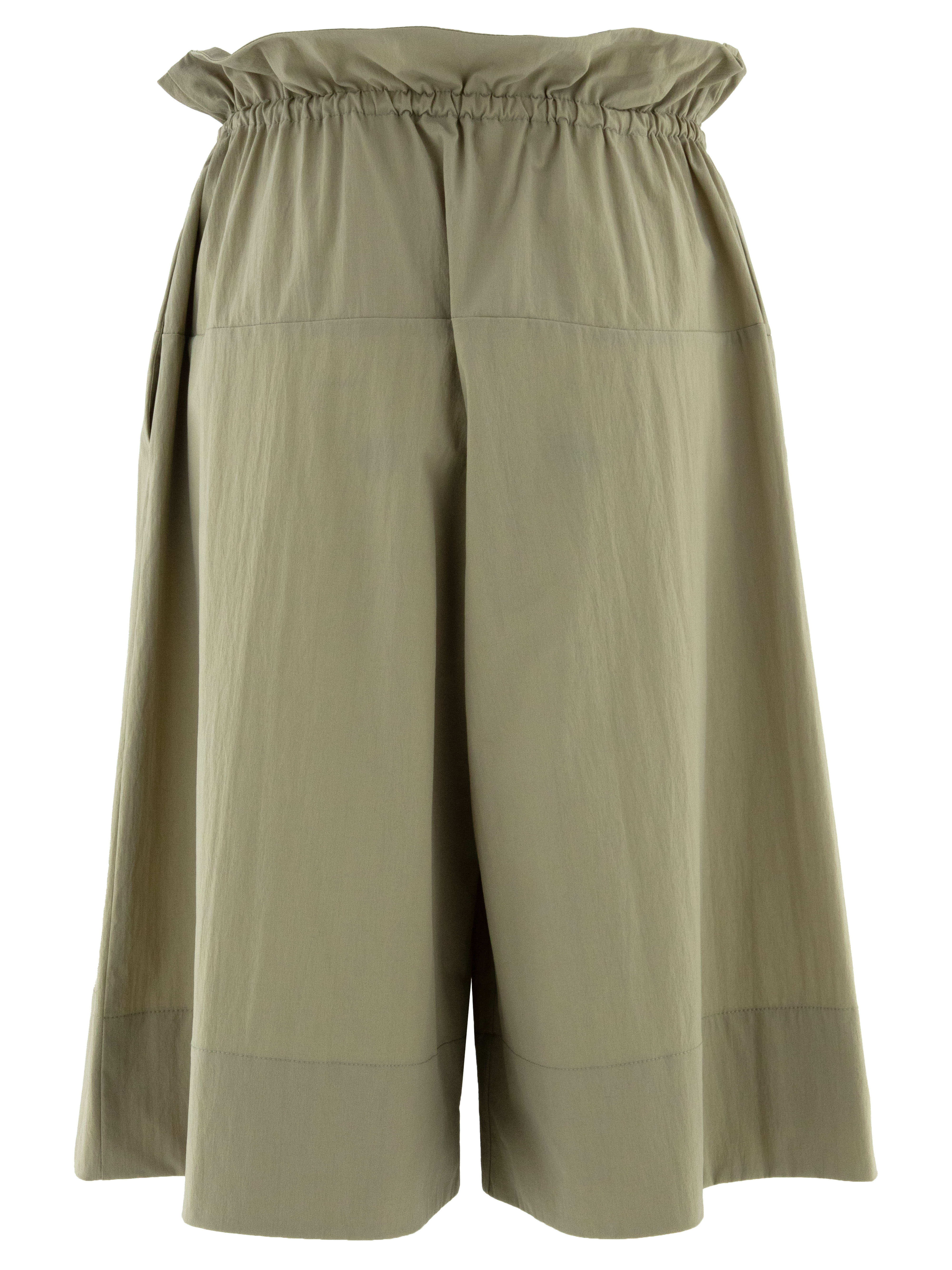Bermuda van Annette Görtz in een elegante olijfgroene tint. In de taille is een elastisch koord in tunnelverwerking aangebracht, waardoor de stof fijn wordt geplooid en een comfortabele pasvorm ontstaat. Deze bermuda kan met de hand worden gewassen.