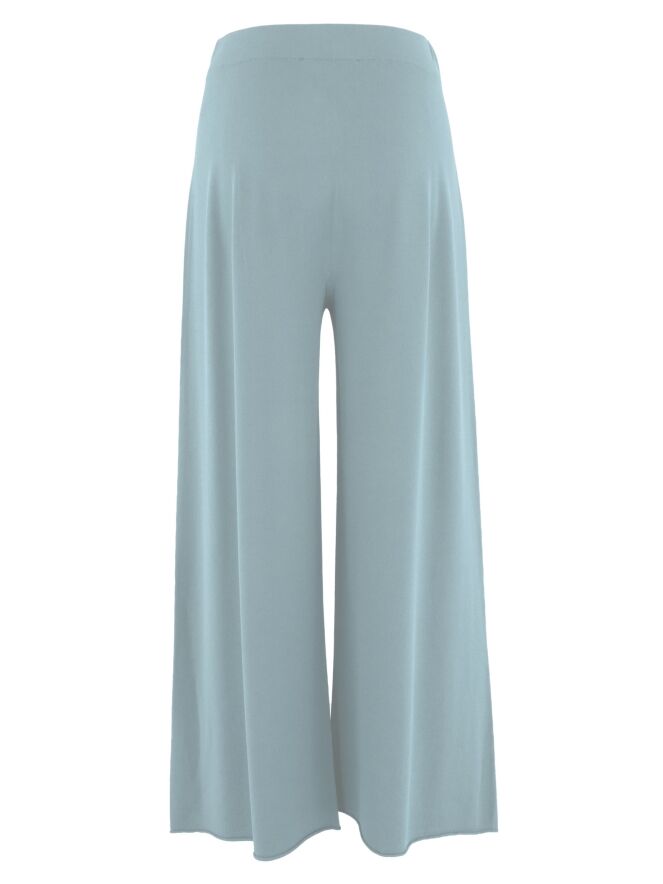 Een fijn geweven, wijde tricot broek van Annette Görtz in een petrolblauwe kleur. In de taille zit een elastische band. De rand aan de onderkant van de pijpen is geruld afgewerkt. Deze broek kan op 30 graden worden gewassen.