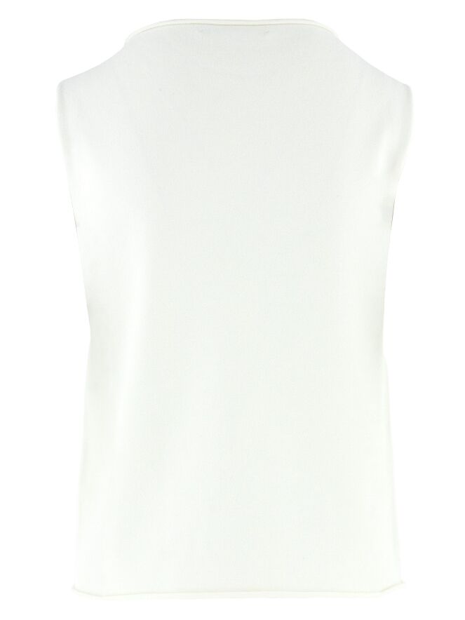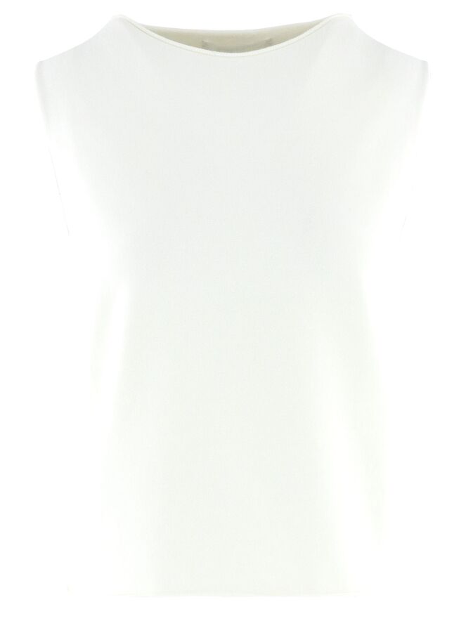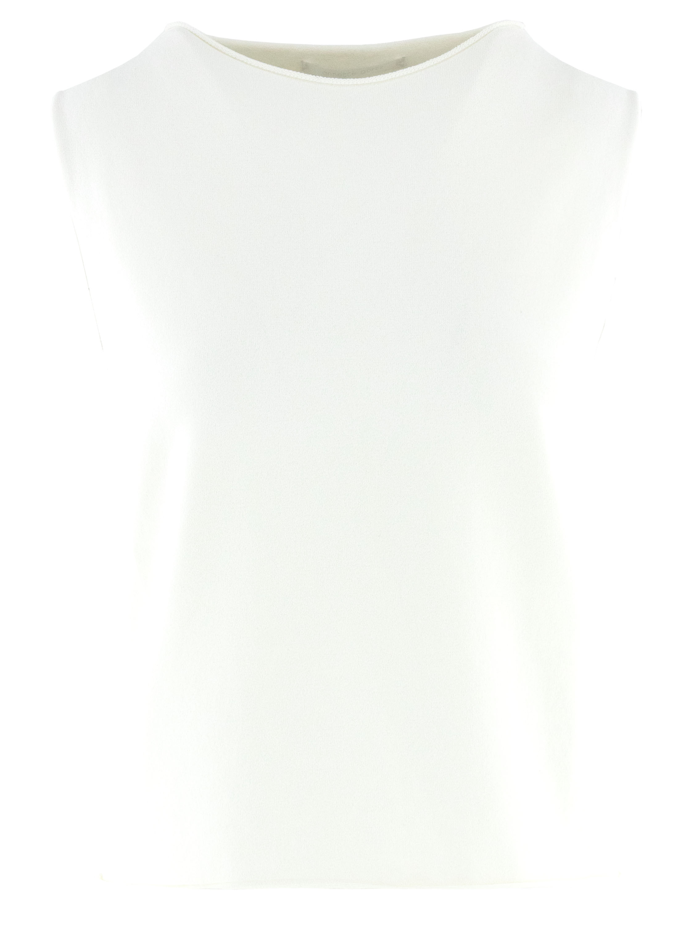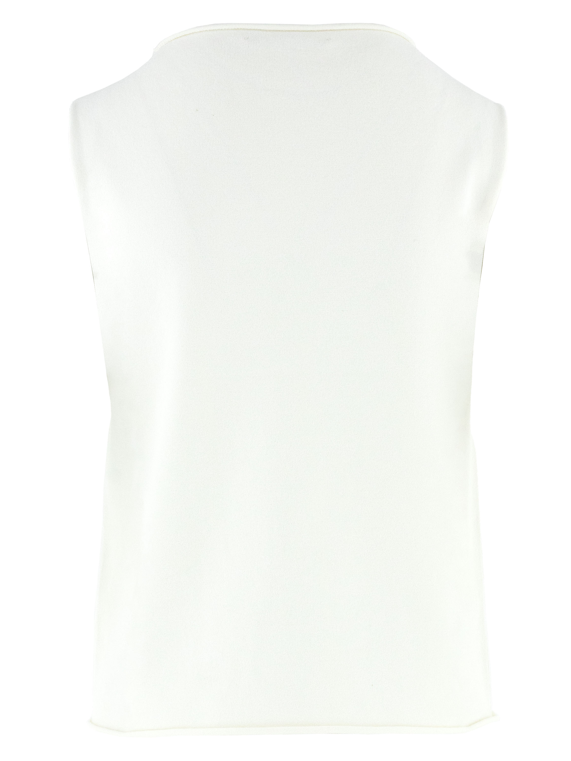 Een top van Annette Görtz in een roomwitte kleur. De rand van de ronde hals, de mouwinzet en de onderkant zijn geruld afgewerkt. Deze top kan op 30 graden worden gewassen.