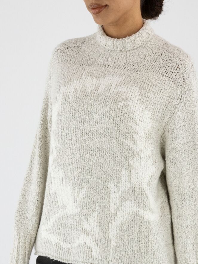 Een luxe pullover van Annette Görtz in een grafische print in beige met roomwit. De pullover heeft een turtlehals en lange mouwen. Dit kledingstuk mag met de hand worden gewassen.