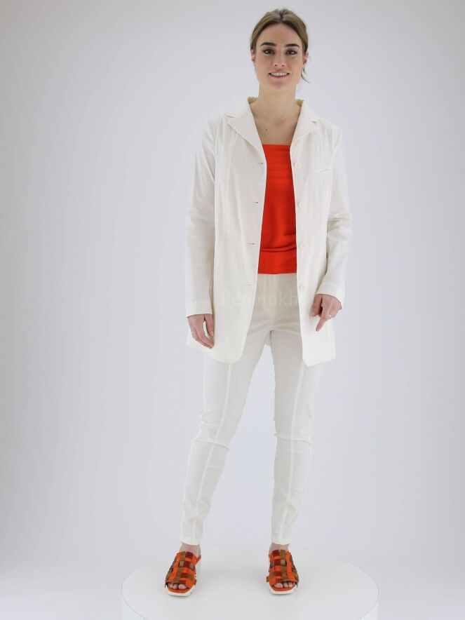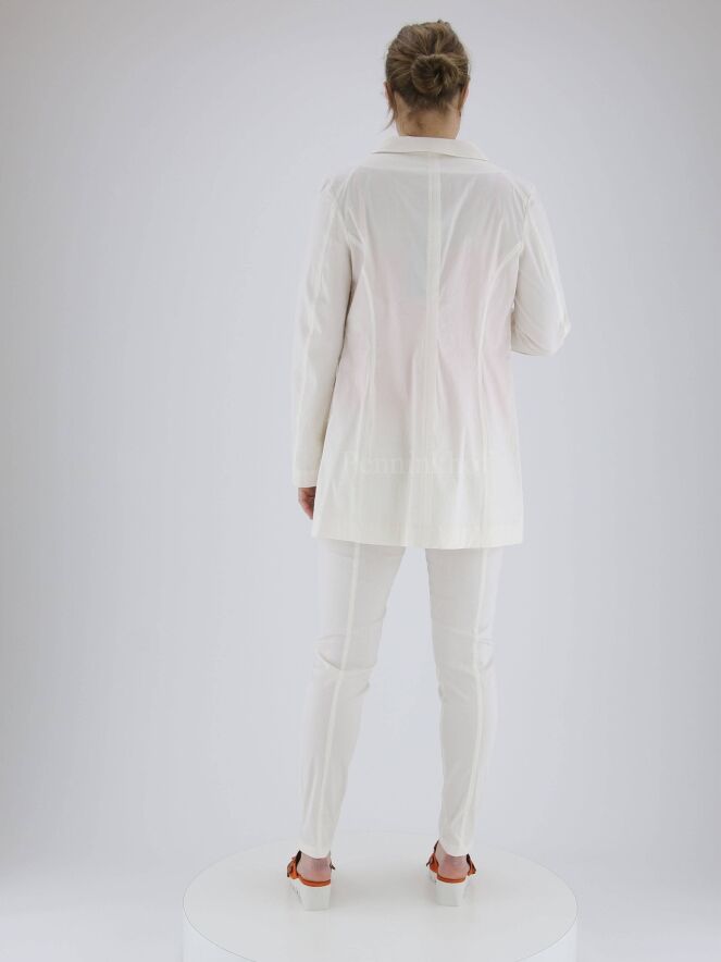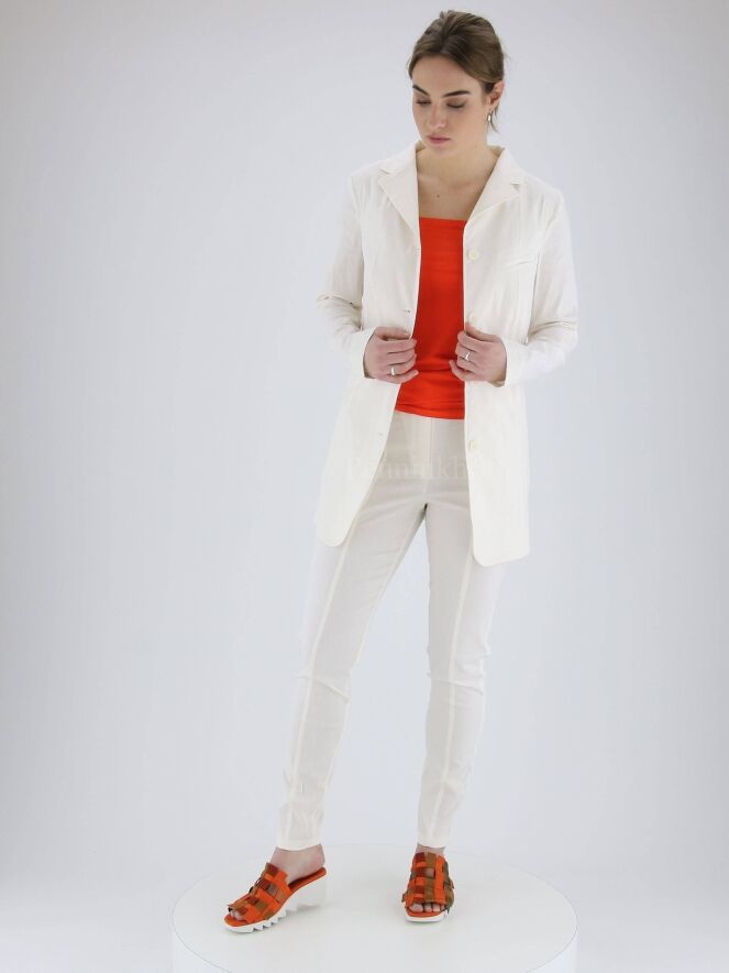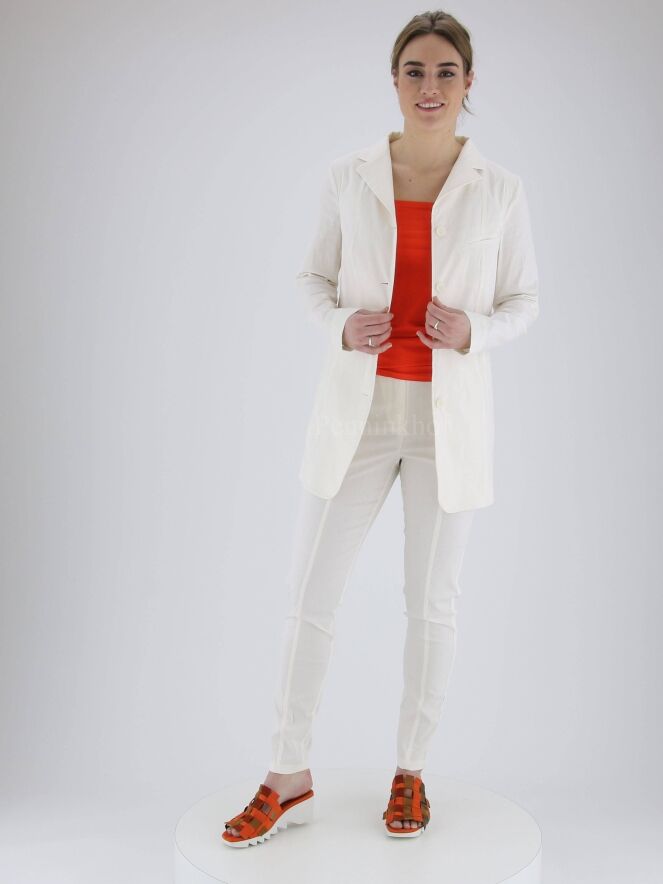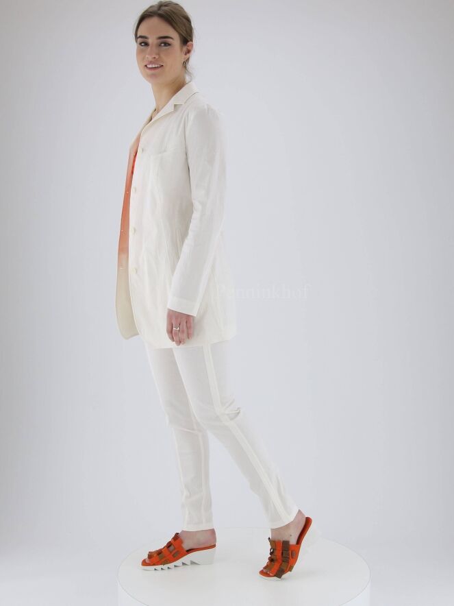 Een blazer van Annette Görtz in de kleur roomwit. De blazer heeft een 4 knoops sluiting en heeft steekzakken. De stof is elastisch en de blazer is ongevoerd. Deze blazer mag op 30 graden worden gewassen.