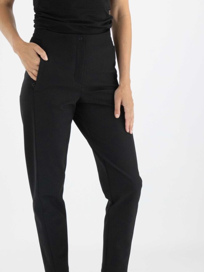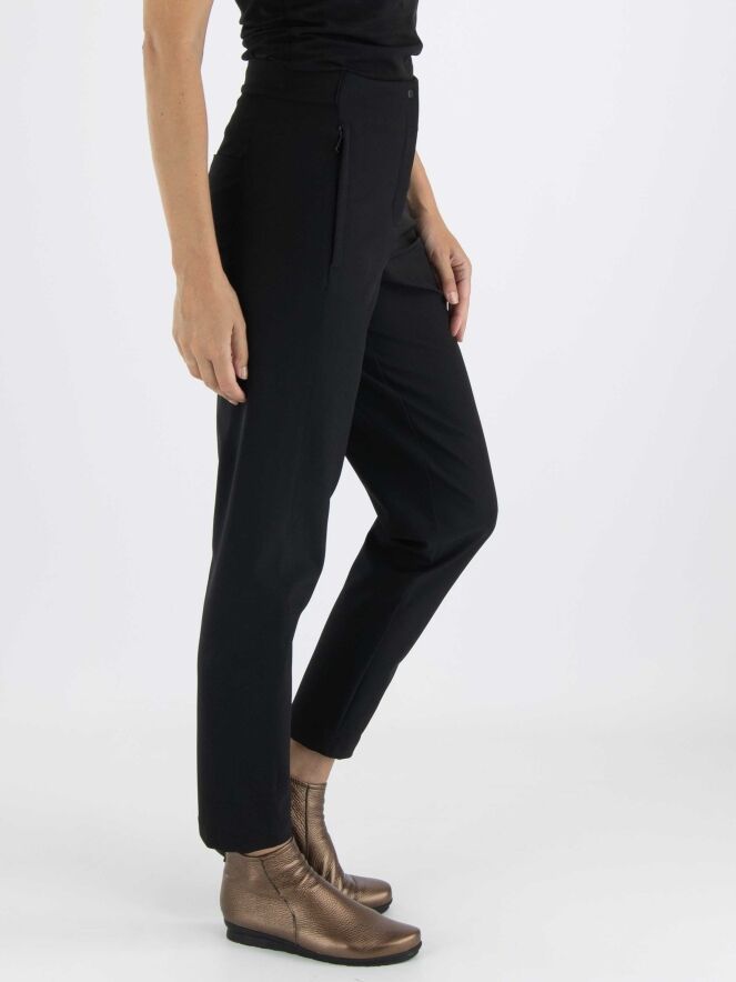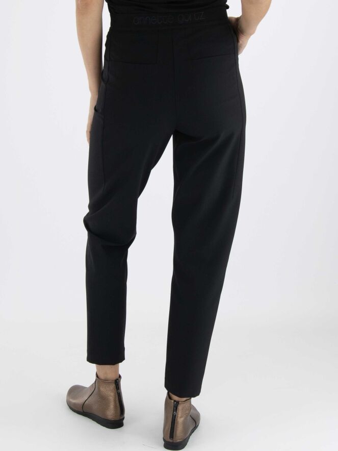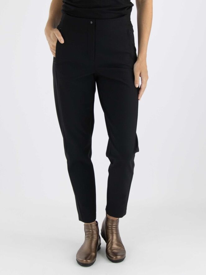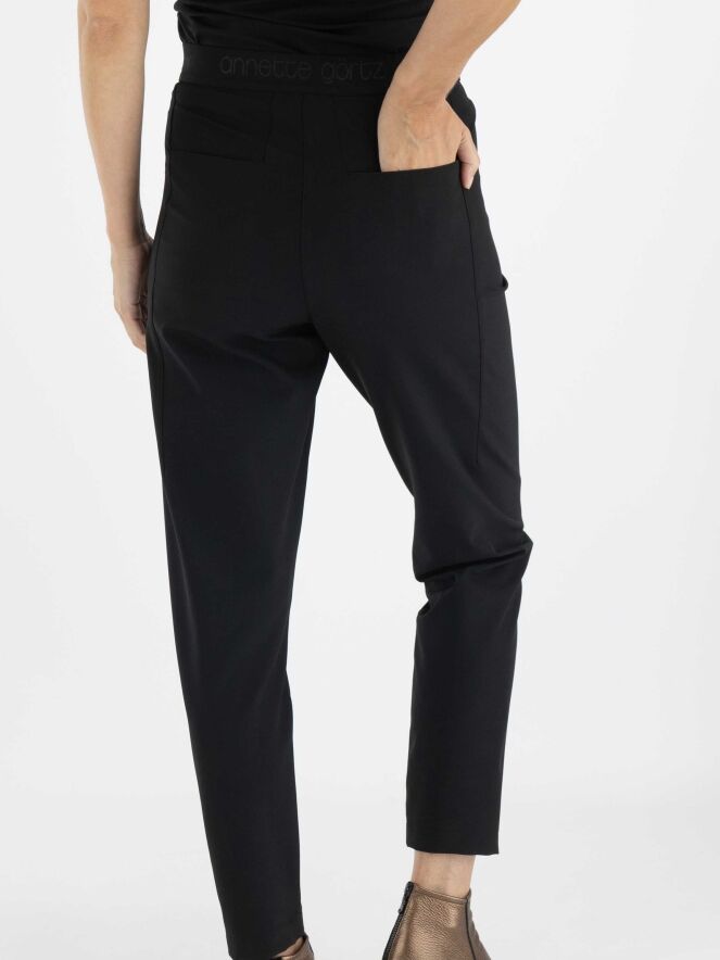 Een broek van Annette Görtz in de kleur zwart. In de taille is aan de achterzijde een elastieken band. De steekzakken hebben een ritssluiting. Deze broek mag op 30 graden worden gewassen.