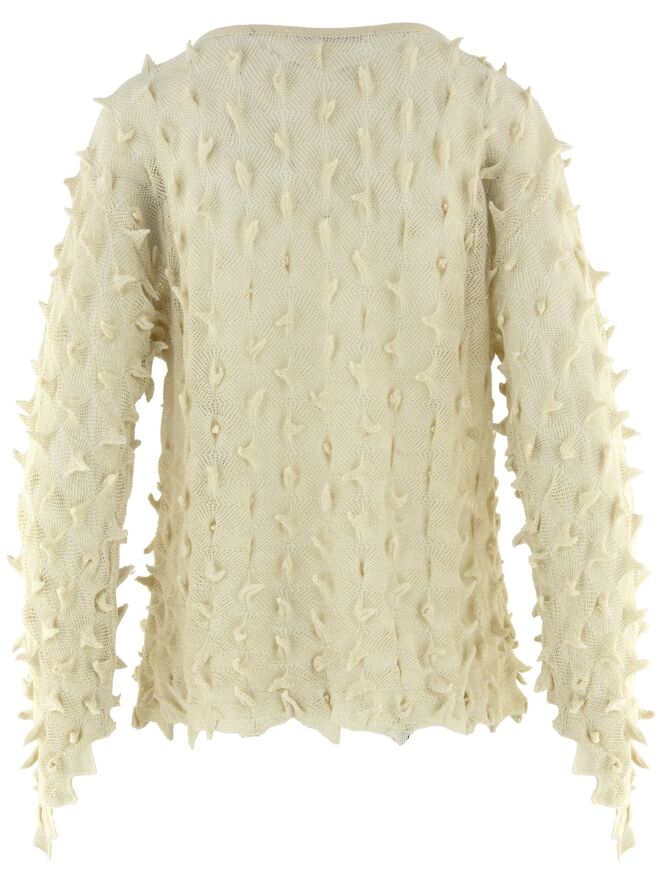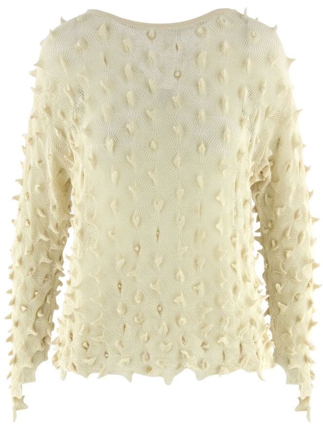Een open geweven pullover van Annette Görtz met decoratieve noppen in een blokpatroon. De pullover heeft een ronde hals en lange mouwen. Deze pullover kan met de hand worden gewassen.