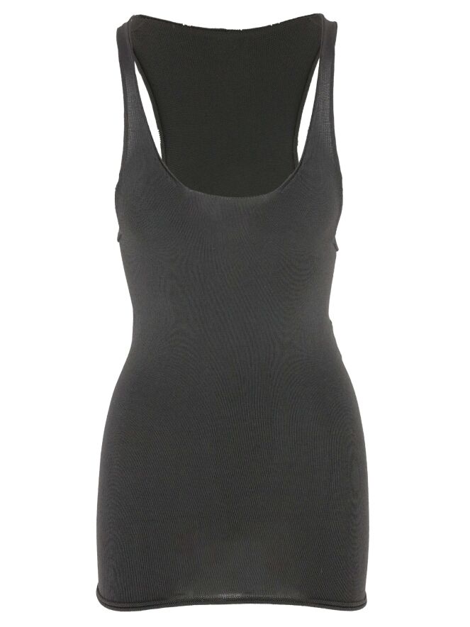 Een lange top van Annette Görtz in de kleur grijs. De top heeft een lage ronde hals en mag op de hand worden gewassen.