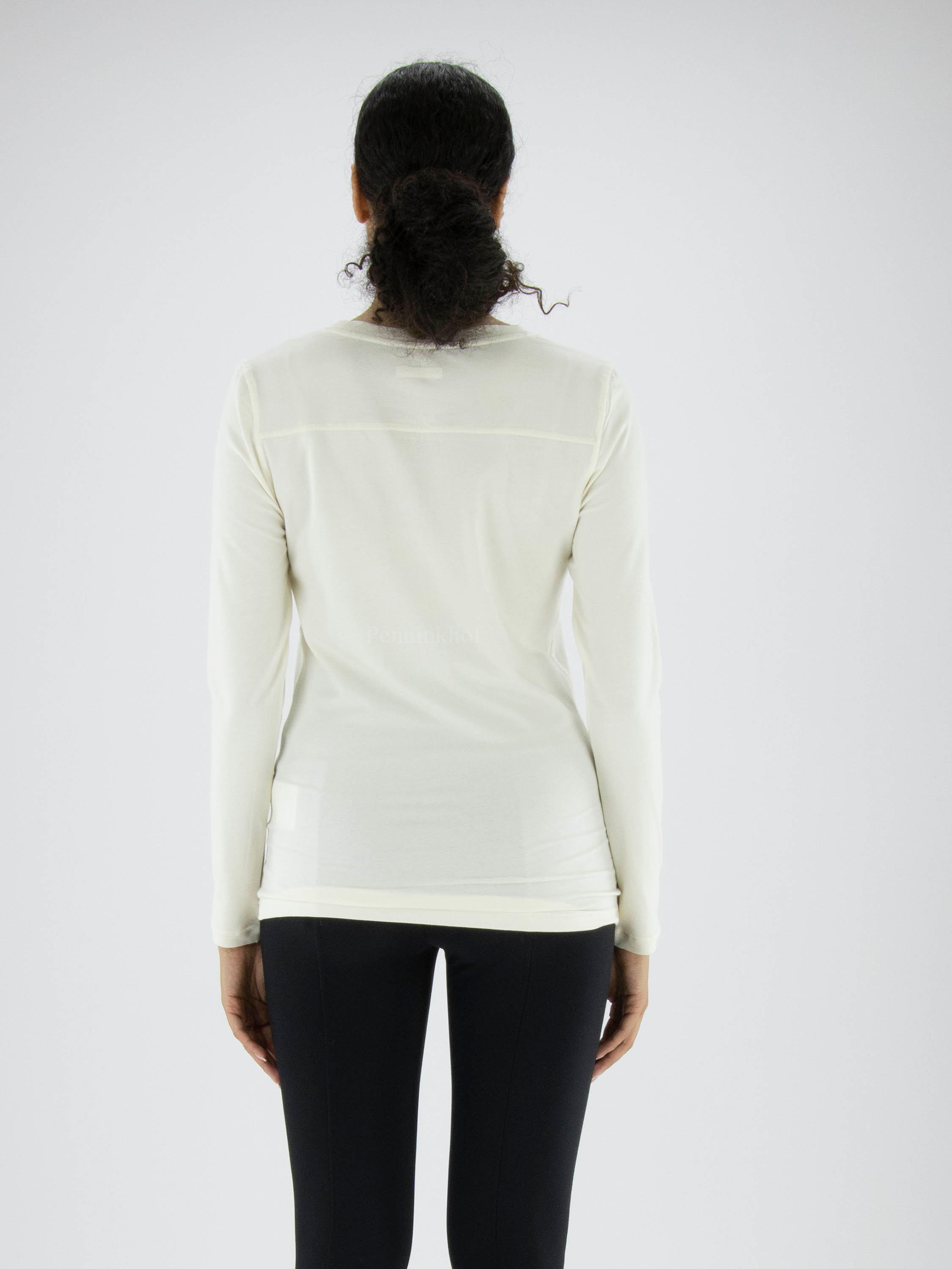 Een shirt van Annette Görtz in de kleur roomwit. In het midden van het shirt is aan de voorkant een stiknaad. Het shirt heeft een ronde hals en mag op 30 graden worden gewassen.