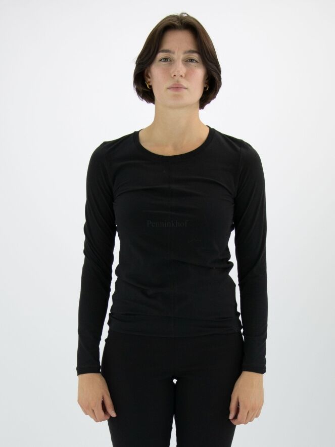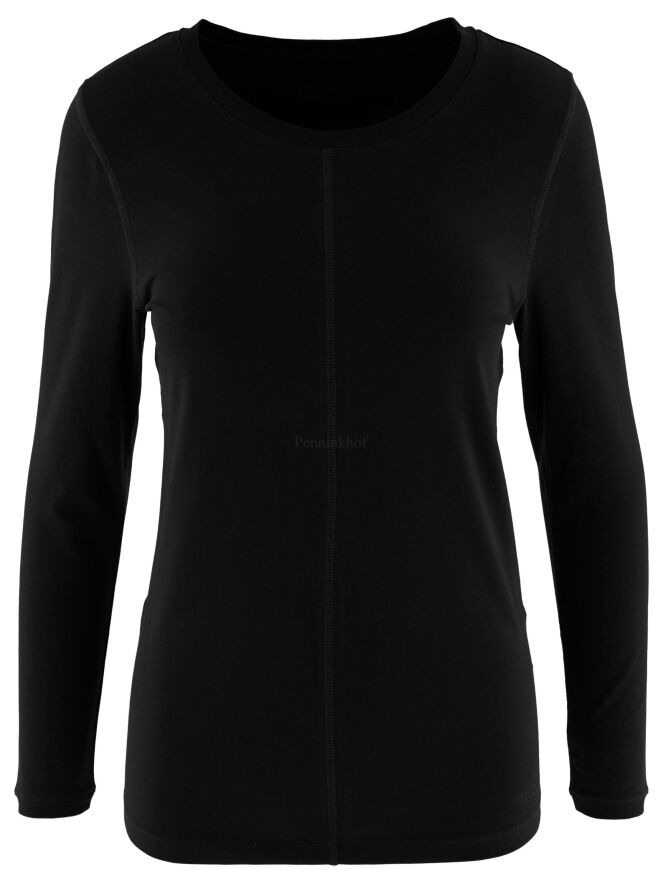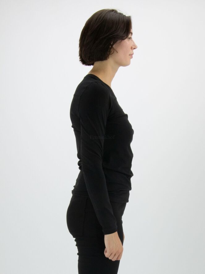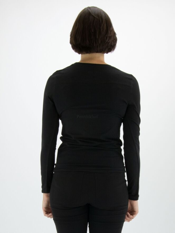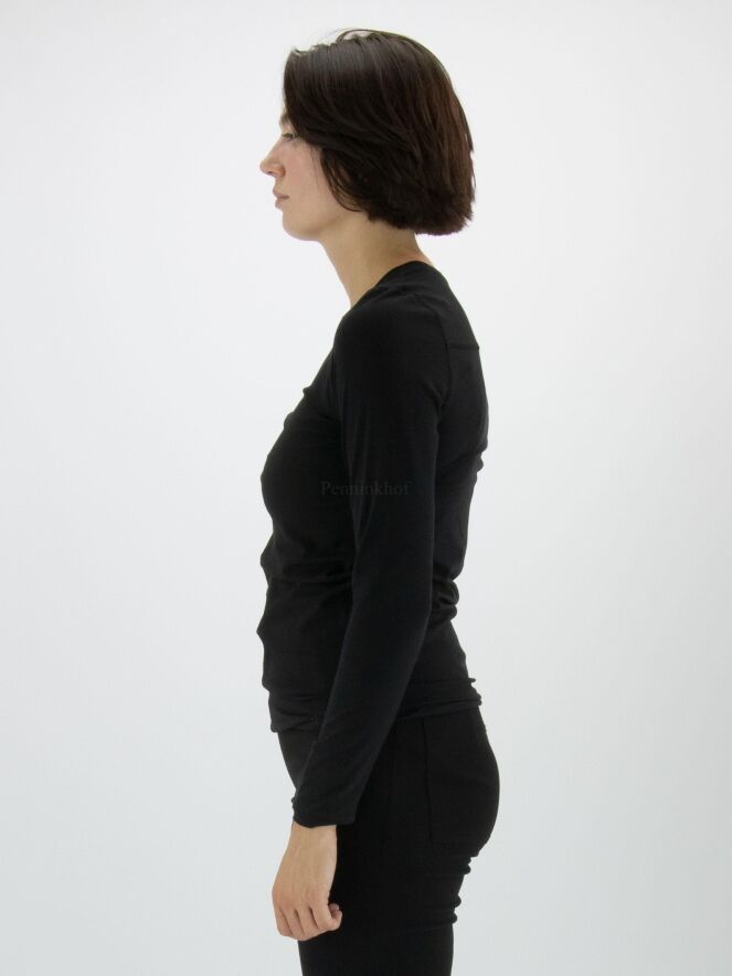 Een shirt van Annette Görtz in de kleur zwart. In het midden van het shirt is aan de voorkant een stiknaad. Het shirt heeft een ronde hals en mag op 30 graden worden gewassen.
