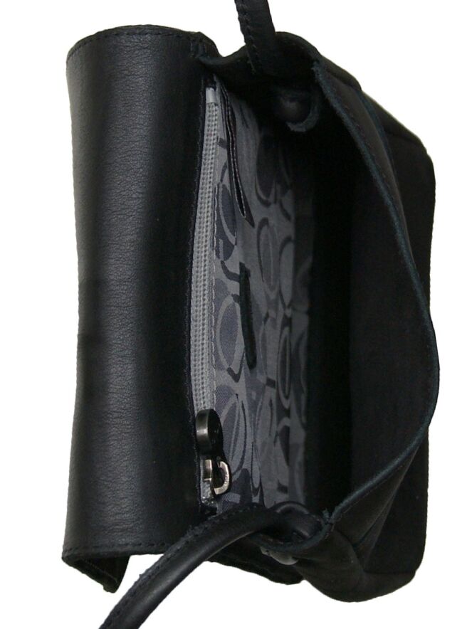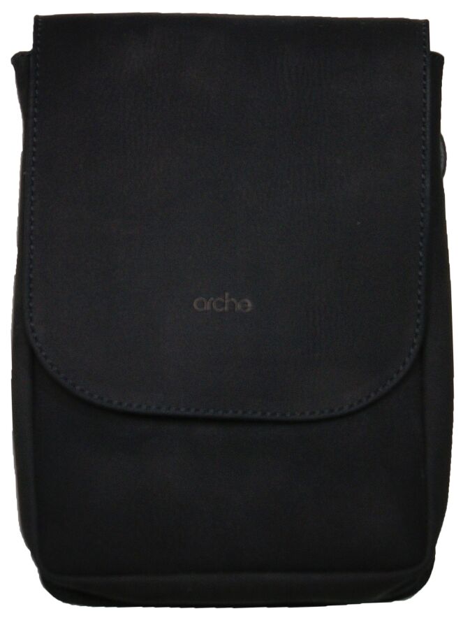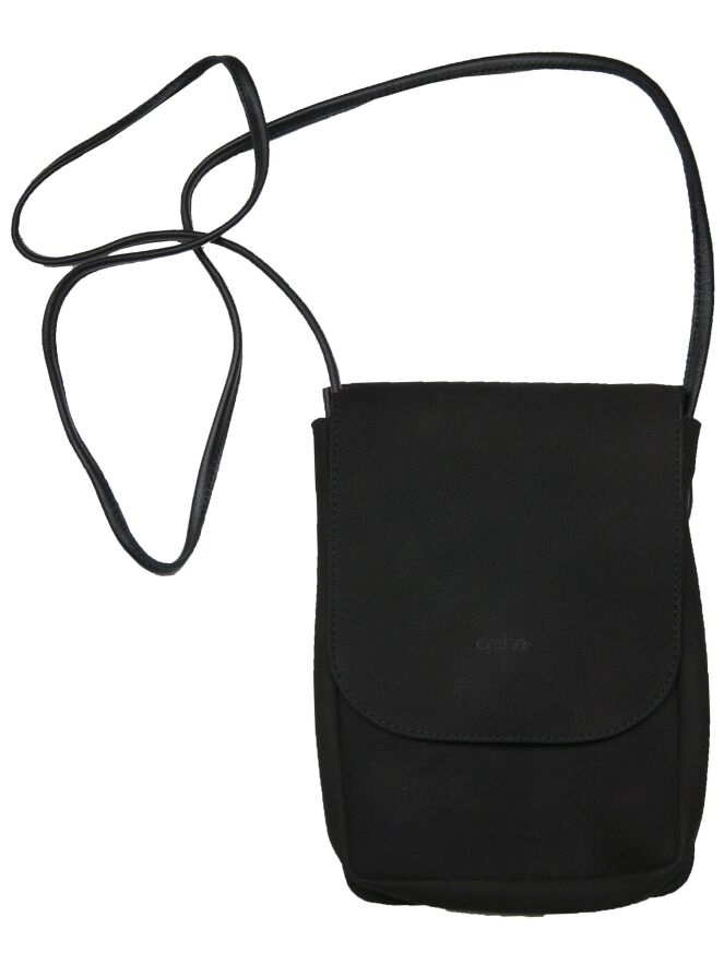 Tas van het merk Arche in suède in de kleur zwart. De tas heeft een lange schouderband en een klein vakje met een rits in de tas.