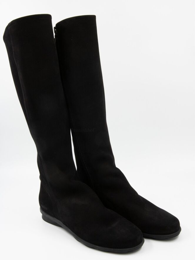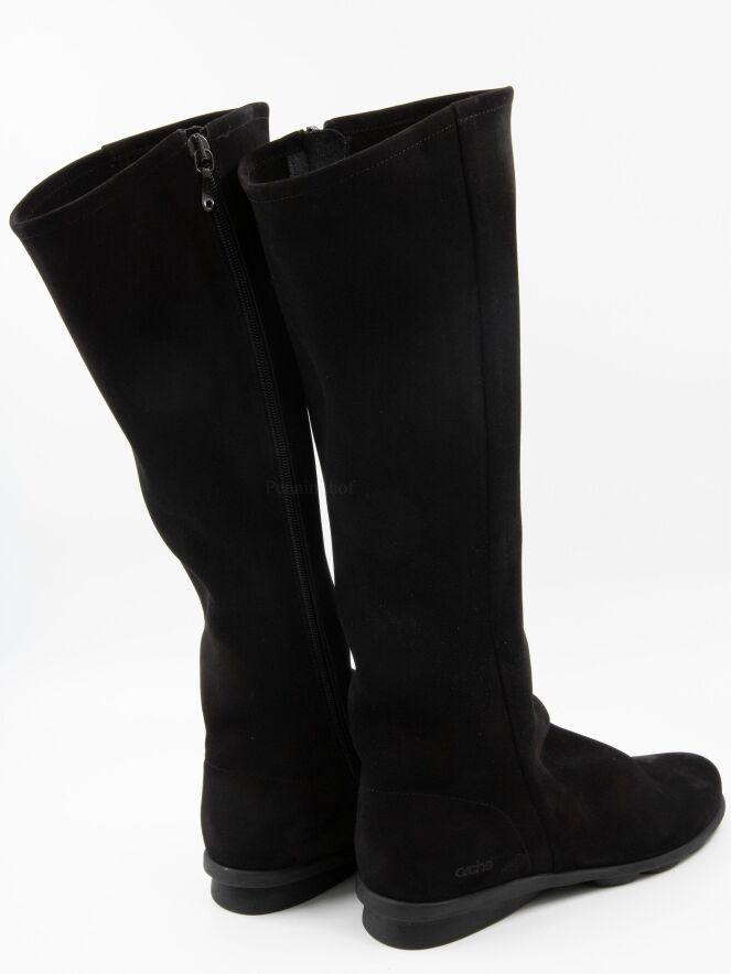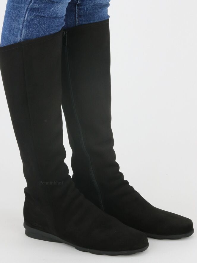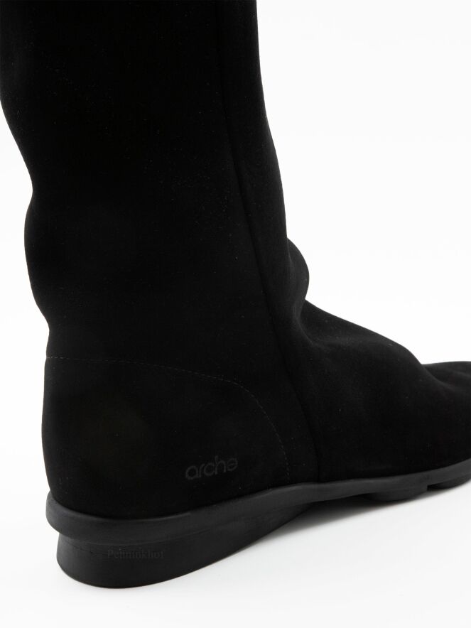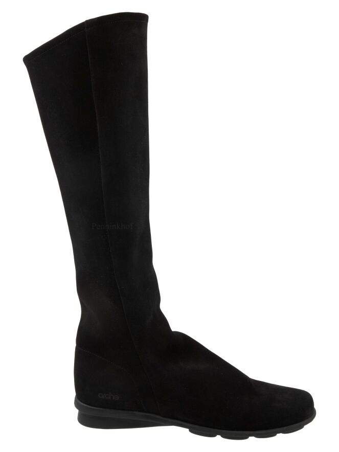 Een laars van Arche in de kleur zwart. Aan de binnenzijde van de schacht is over de gehele lengte een zwarte rits. De binnenkant van de schacht is ongevoerd.