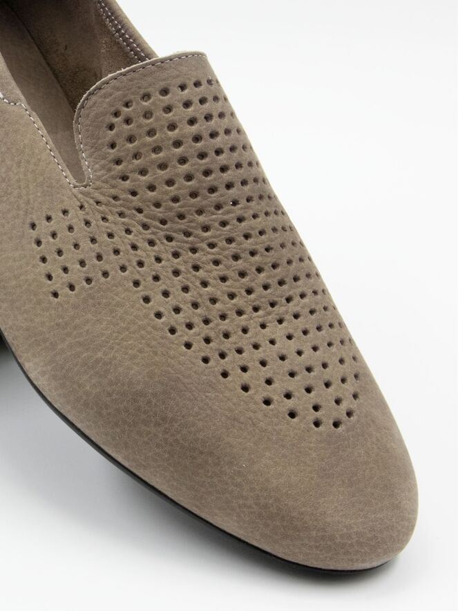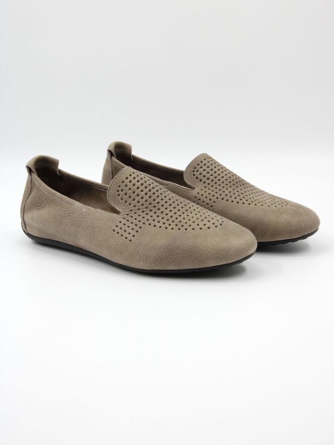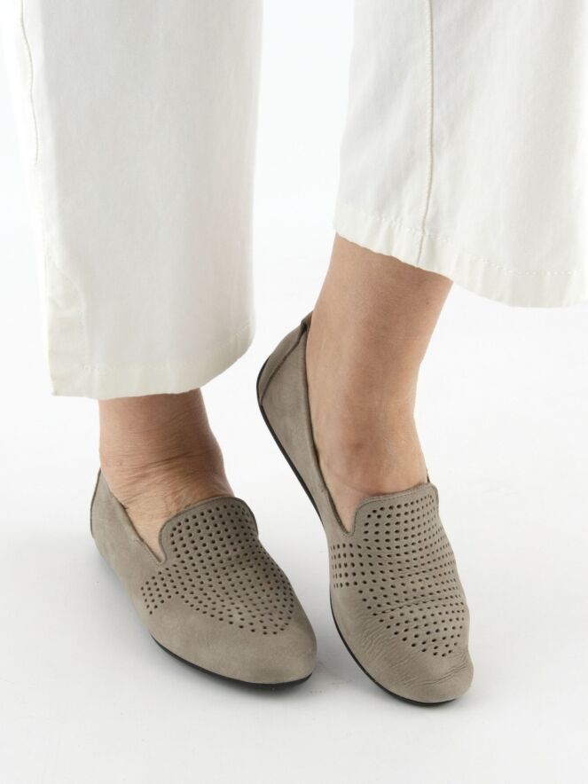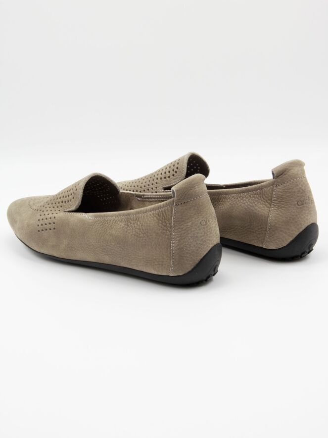 Een instapper van Arche in de kleur grijs. Het leder op de voorvoet is fijn geperforeerd. De zool is uitgevoerd in de kleur zwart. De binnenkant is ongevoerd voor extra souplesse.