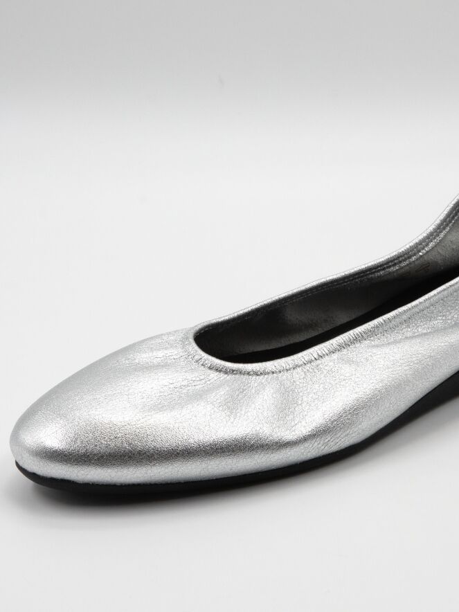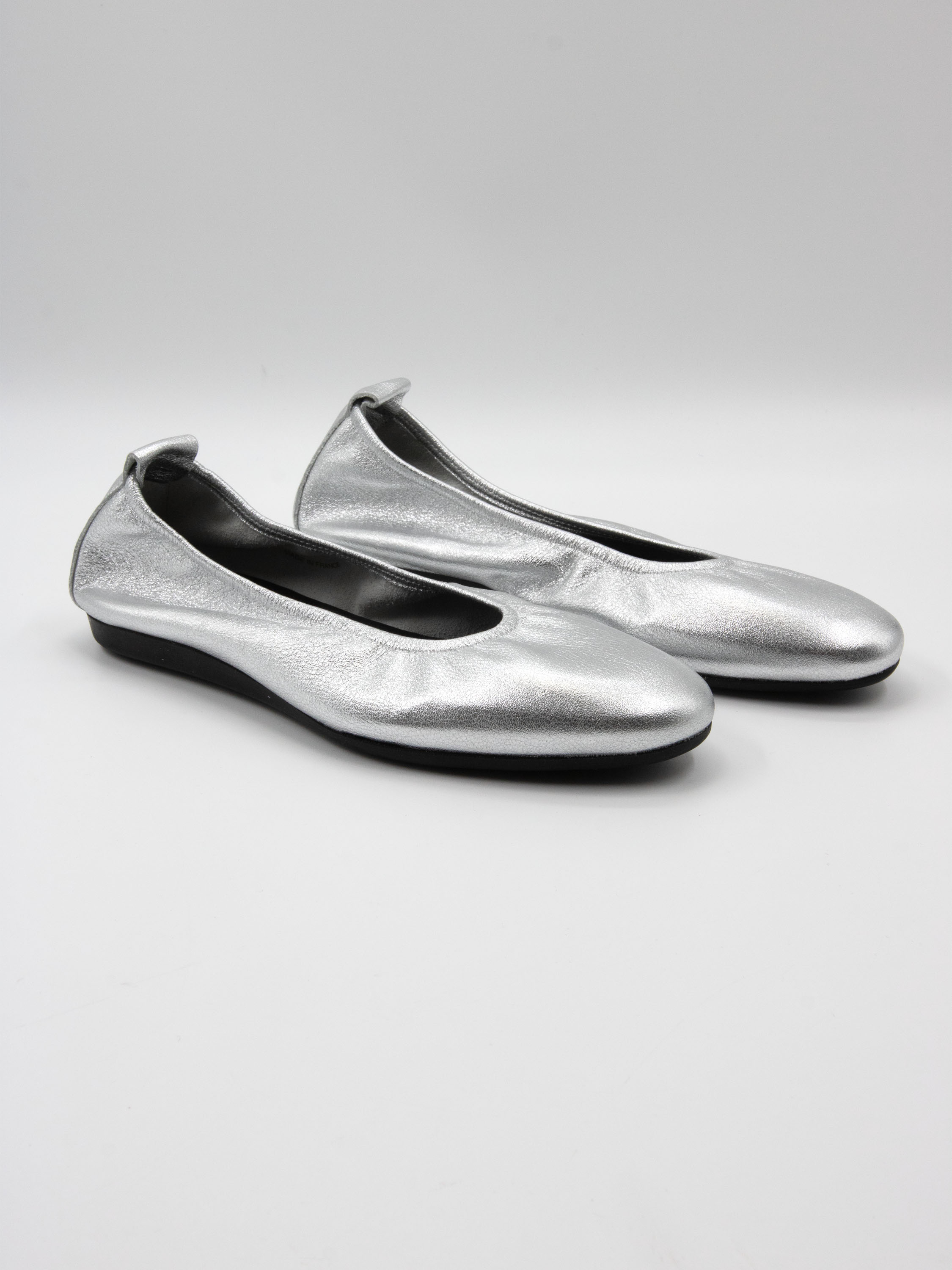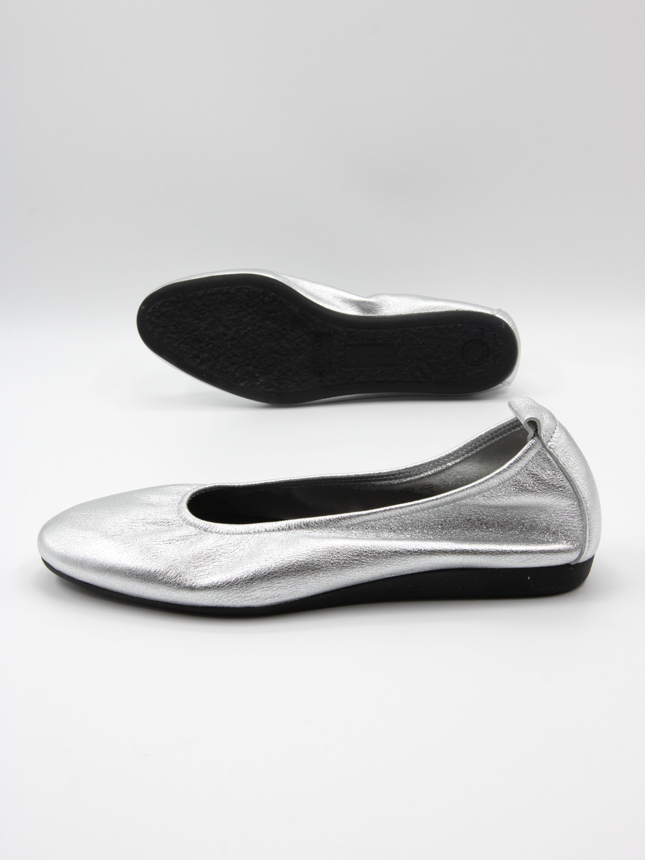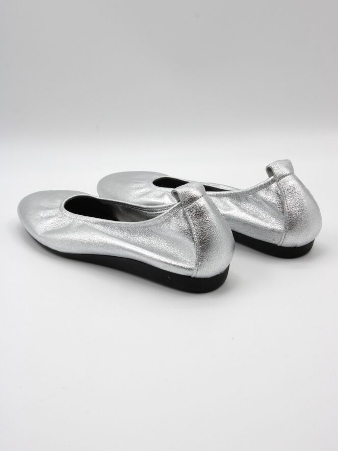 Het model Laius van Arche is een tijdloos basismodel in een elegante zilverkleur. Deze ballerina is vervaardigd van hoogwaardig kalfsleder en uitgevoerd in een uni tint, wat zorgt voor een verfijnde en veelzijdige uitstraling. De neus is elegant rond gesneden en de binnenzijde is ongevoerd voor extra souplesse en een natuurlijk draaggevoel. De flexibele latex zool biedt optimale demping, terwijl het licht verhoogde achterstuk van de zool bijdraagt aan extra comfort.