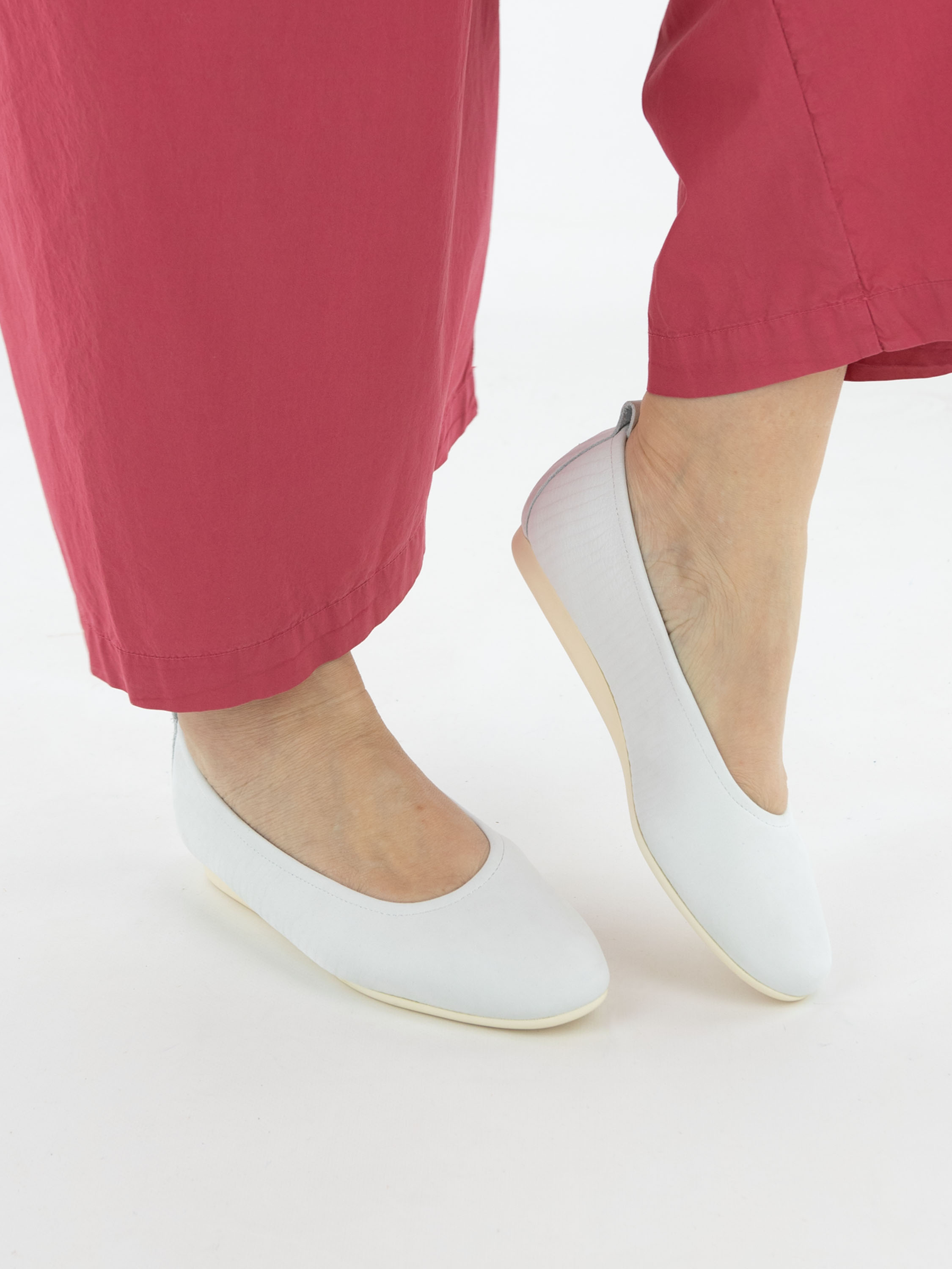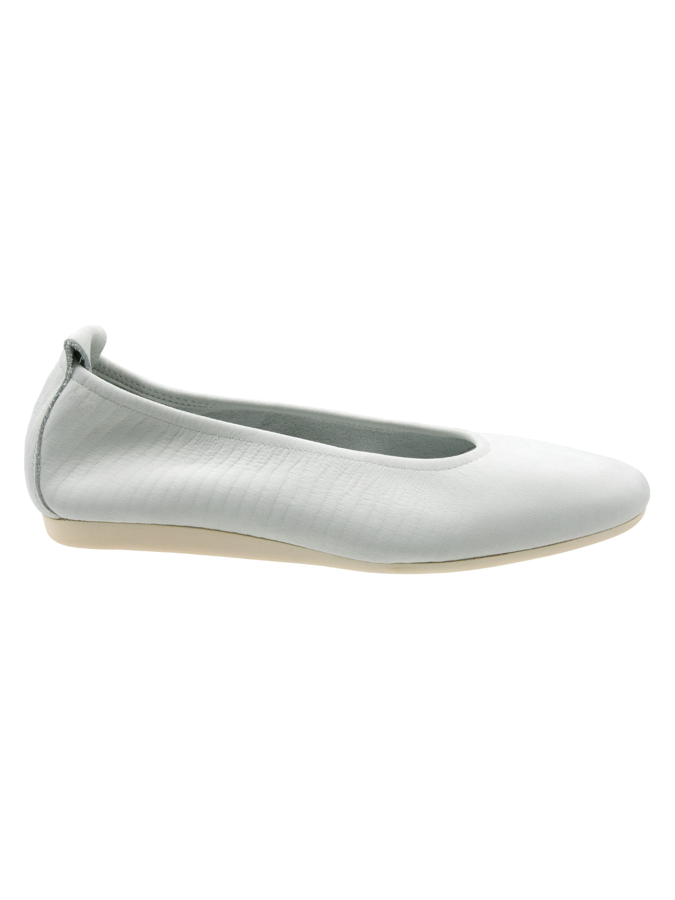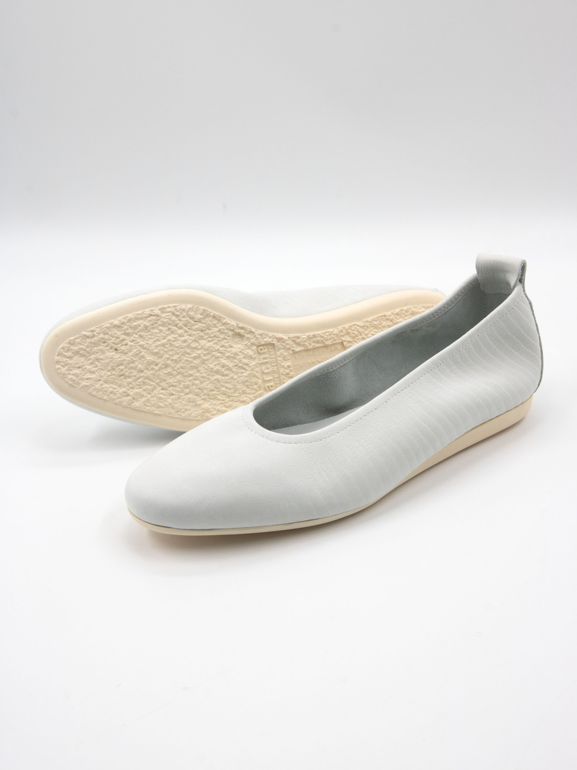 Het model Laius van Arche is een tijdloos basismodel, uitgevoerd in een verfijnde reptielprint in meerdere tinten roomwit. Deze ballerina is vervaardigd van hoogwaardig kalfssuède en voorzien van een flexibele latex zool, wat zorgt voor uitzonderlijk comfort. De neus is elegant rond gesneden en de binnenzijde is ongevoerd voor extra souplesse en een natuurlijke pasvorm. Het achterste deel van de zool is licht verhoogd, wat bijdraagt aan optimaal draagcomfort.