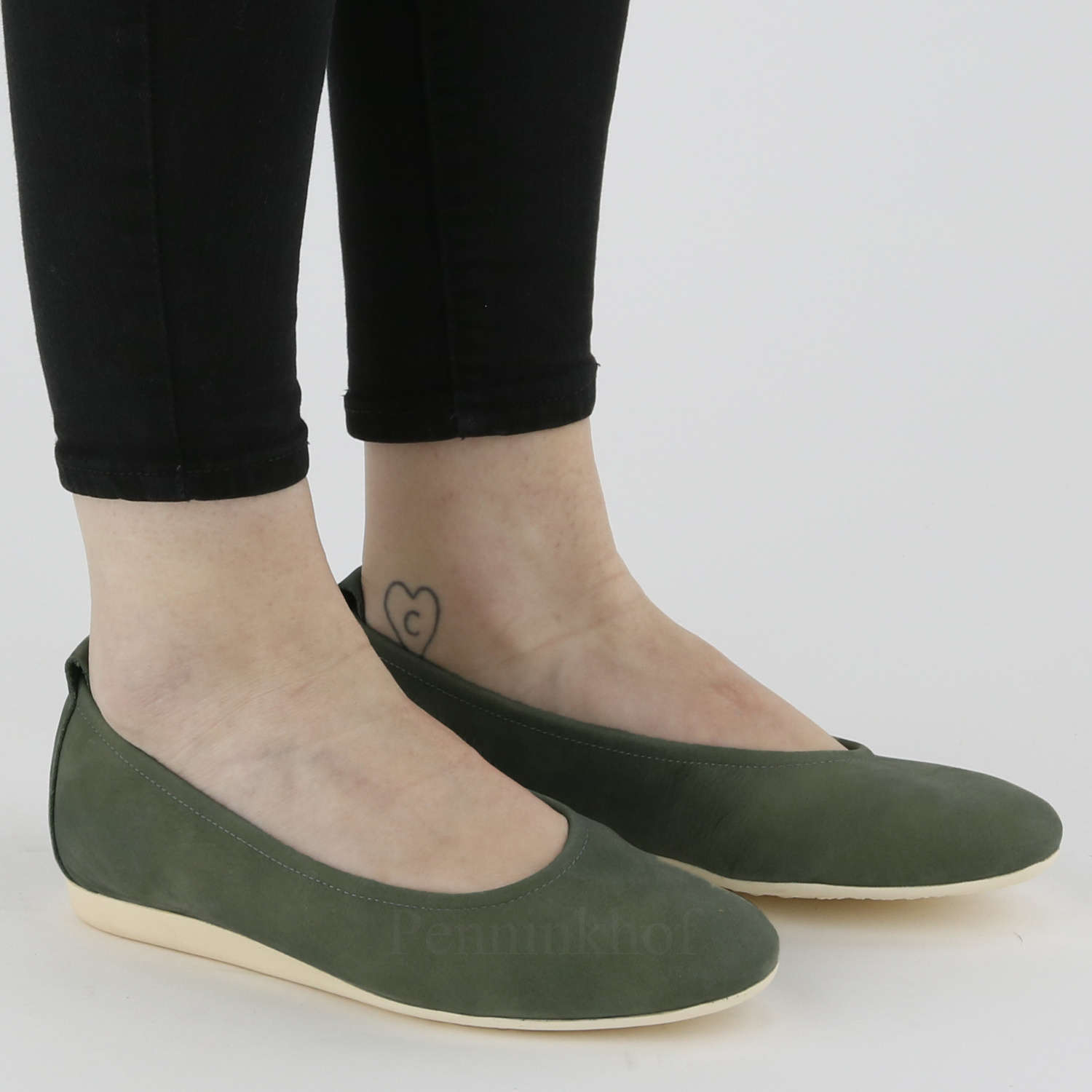 Het model Laius is een basis model van het merk Arche in de kleur olijfgroen. Deze ballerina is van een hoge kwaliteit kalfssuède gemaakt en heeft een roomwitte latex zool. Het model heeft een uni kleur. Het neusje van de ballerina is mooi rond gesneden. De ballerina is aan de binnenzijde niet gevoerd. Het achterstuk van de zool is licht verhoogd wat bijdraagt aan meer comfort.