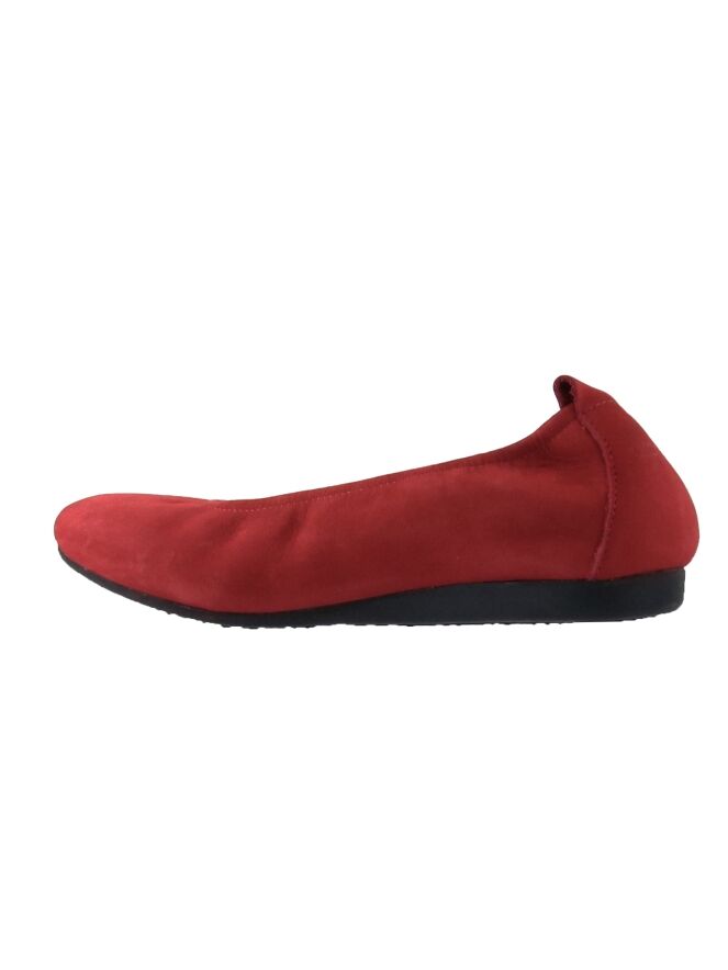 Het model Laius is een basis model van het merk Arche in de kleur rood. Deze ballerina is van een hoge kwaliteit kalfssuède gemaakt en heeft een latex zool. Het model heeft een uni kleur. Het neusje van de ballerina is mooi rond gesneden. De ballerina is aan de binnenzijde niet gevoerd. Het achterstuk van de zool is licht verhoogd wat bijdraagt aan meer comfort.