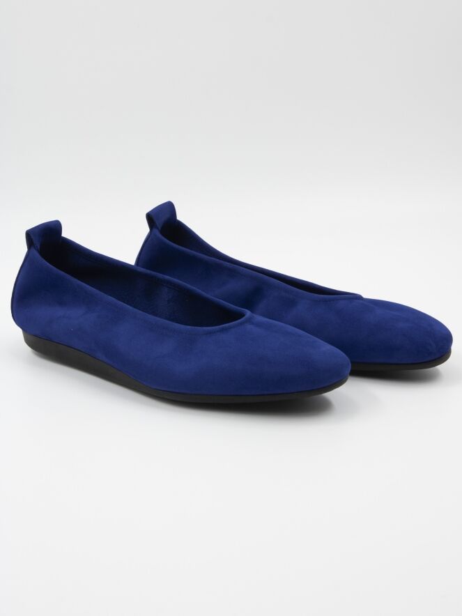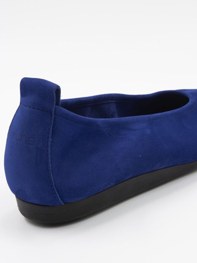 Het model Laius van het merk Arche in de kleur kobaltblauw. Deze ballerina is van een hoge kwaliteit nubuck suède gemaakt en heeft een latex zool. Het model heeft een uni kleur. Het neusje van de ballerina is mooi rond gesneden. De ballerina is aan de binnenzijde niet gevoerd. Het achterstuk van de zool is licht verhoogd wat bijdraagt aan meer comfort.
