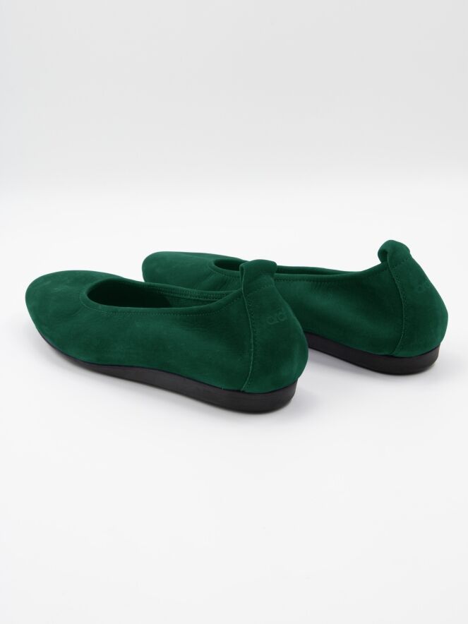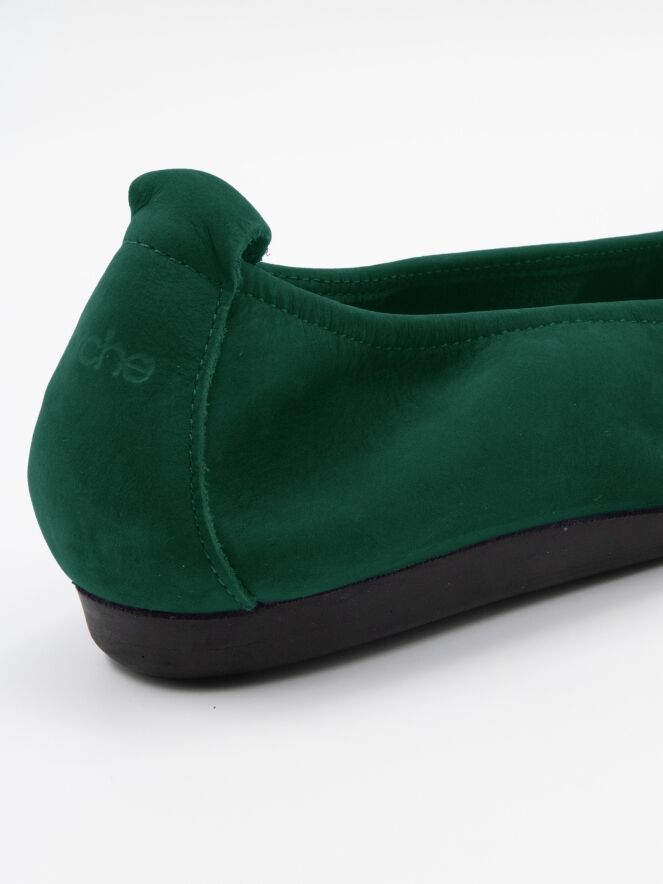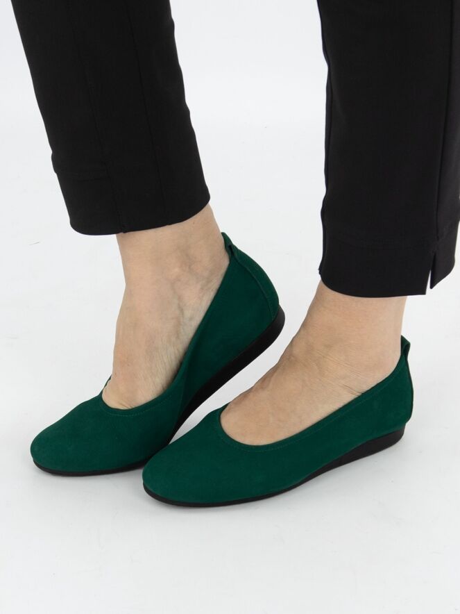Het model Laius is een basis model van het merk Arche in de kleur groen. Deze ballerina is van een hoge kwaliteit kalfssuède gemaakt en heeft een latex zool. Het model heeft een uni kleur. Het neusje van de ballerina is mooi rond gesneden. De ballerina is aan de binnenzijde niet gevoerd. Het achterstuk van de zool is licht verhoogd wat bijdraagt aan meer comfort.