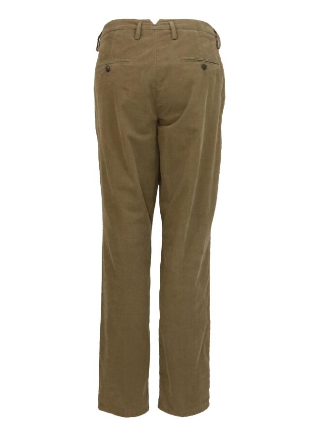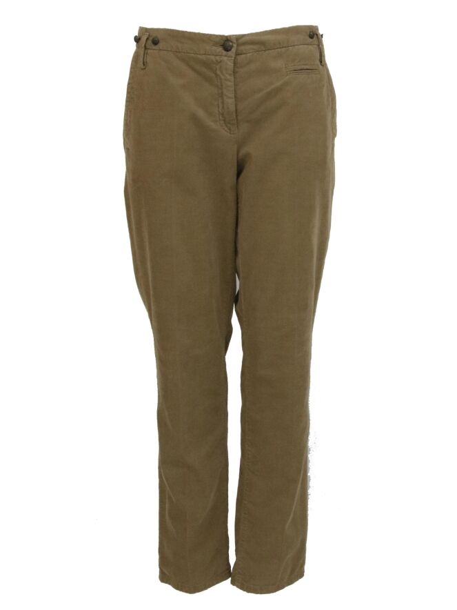 Een ribcord broek van Cambio in de kleur camel. De broek heeft steekzakken en aan de linker kant is een kleine decoratieve zak. Deze broek mag op 30 graden worden gewassen.