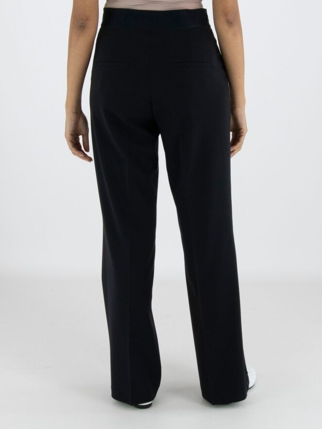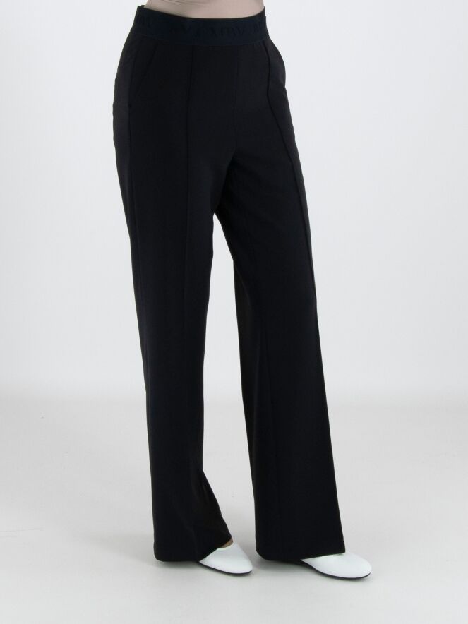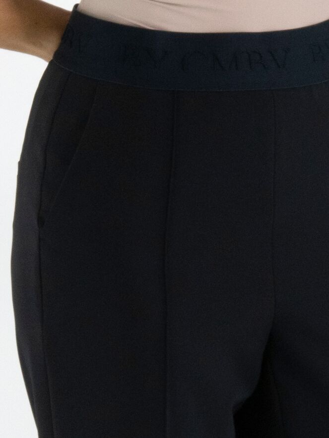 Een luxe broek van Cambio in de kleur marineblauw. In de taille is een elastieken band met ingeweven letters. De broek heeft steekzakken en in het midden van de pijpen is aan de voorkant een stiknaad. Deze broek mag op 30 graden worden gewassen.