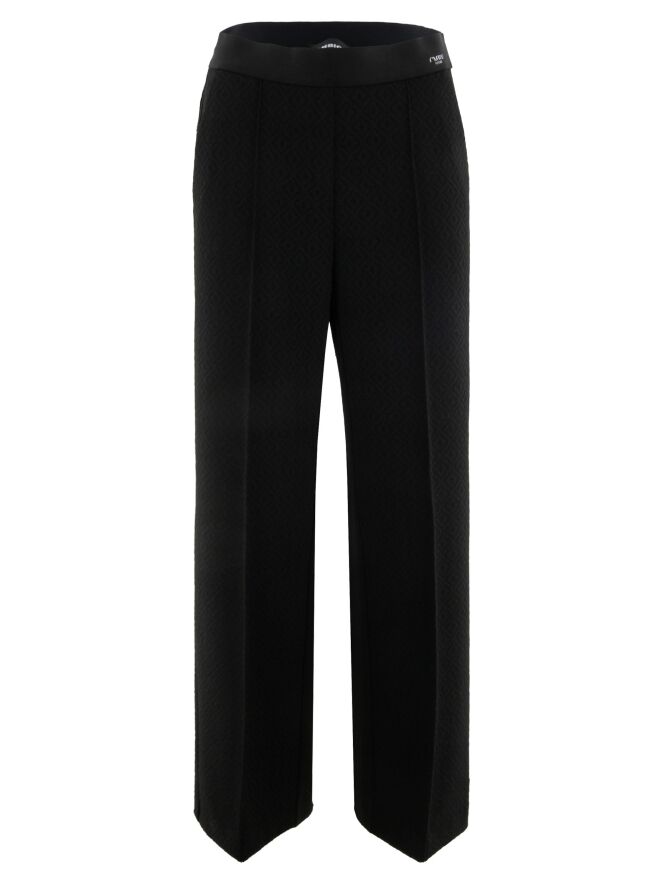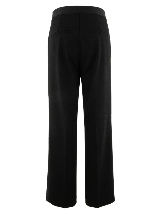 Een broek van cambio in de kleur zwart met glitterdetail. In de taille is een elastieken band. De broek heeft een fijne ruitprint. In de taille is een elastieken band. Deze broek is een recht vallend model. De broek heeft steekzakken en in het midden van de pijpen is een ingestreken naad. Het mag op 30 graden worden gewassen.