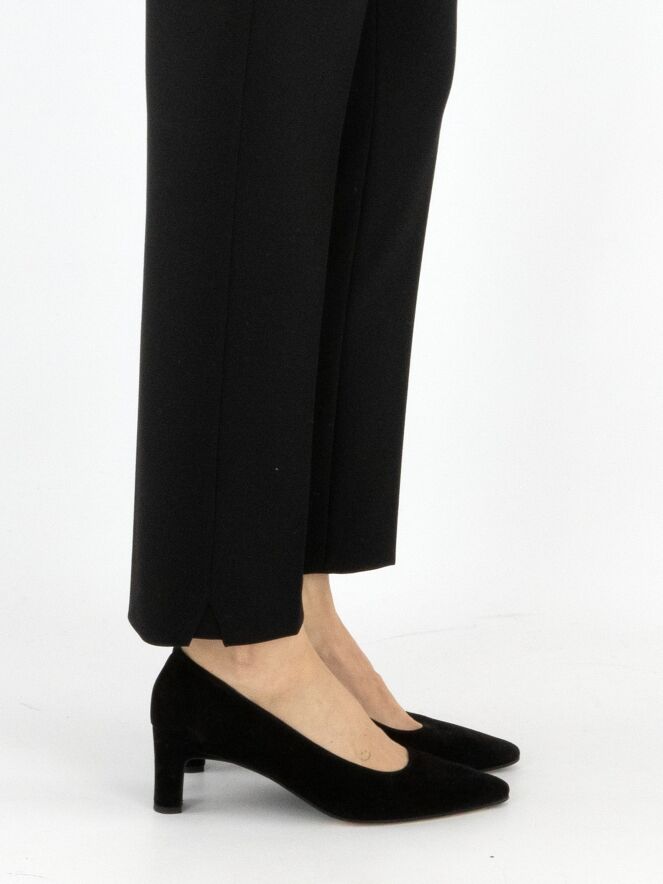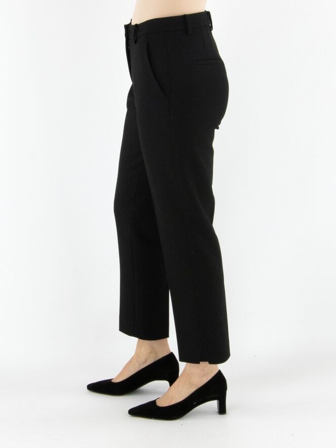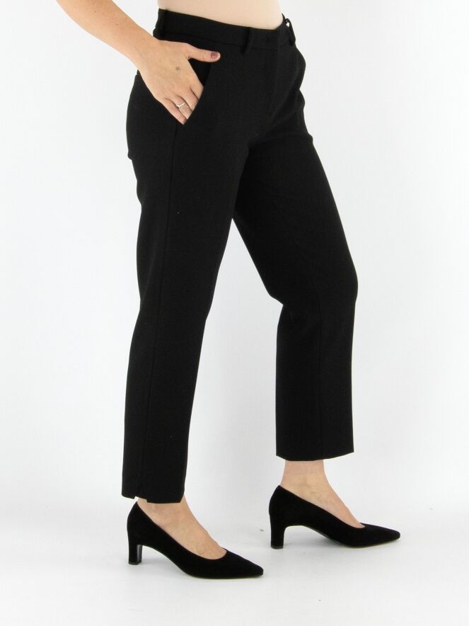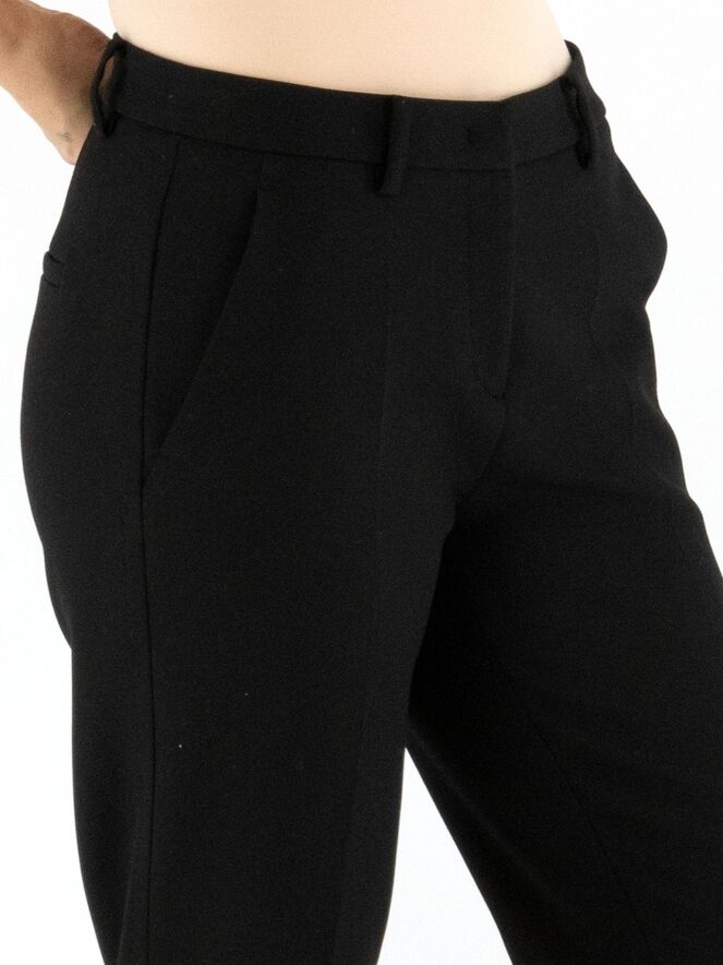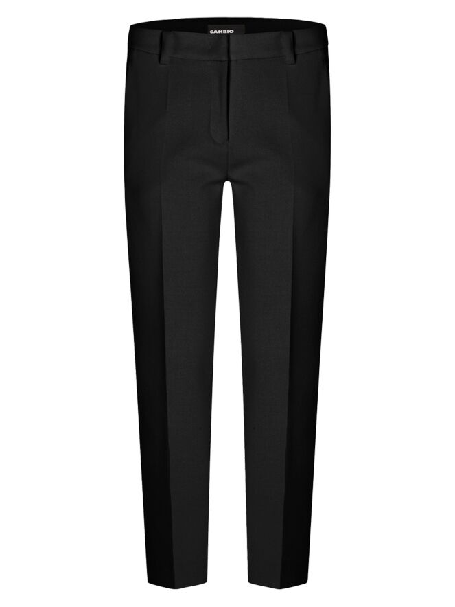 Broek van Cambio in klassiek zwart. Deze elegante damesbroek is voorzien van steekzakken en een ingestreken plooi midden op de pijpen, wat zorgt voor een slanke en tijdloze uitstraling. Voor langdurig draagplezier adviseren wij de broek met de hand te wassen.