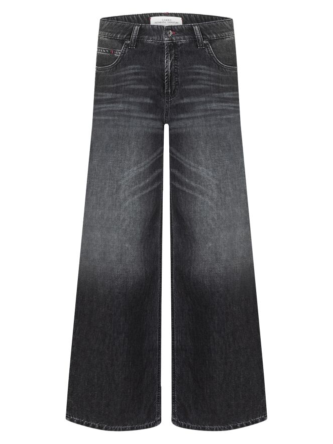 Een wijde jeans van Cambio in een donkergrijze kleur. De jeans is uitgevoerd in een klassiek 5-pocket model en biedt een moderne, comfortabele pasvorm. Deze jeans kan op 30 graden worden gewassen.