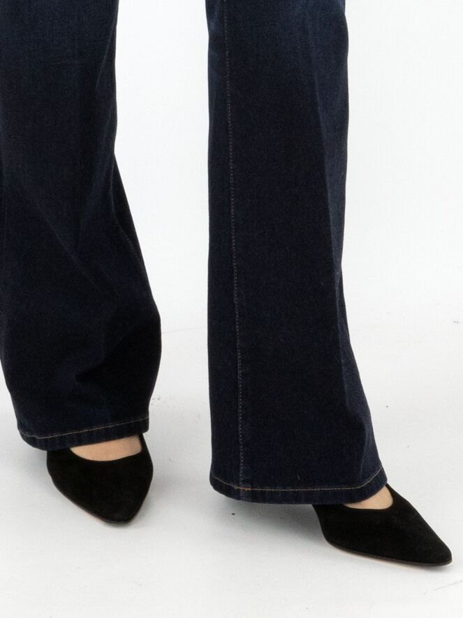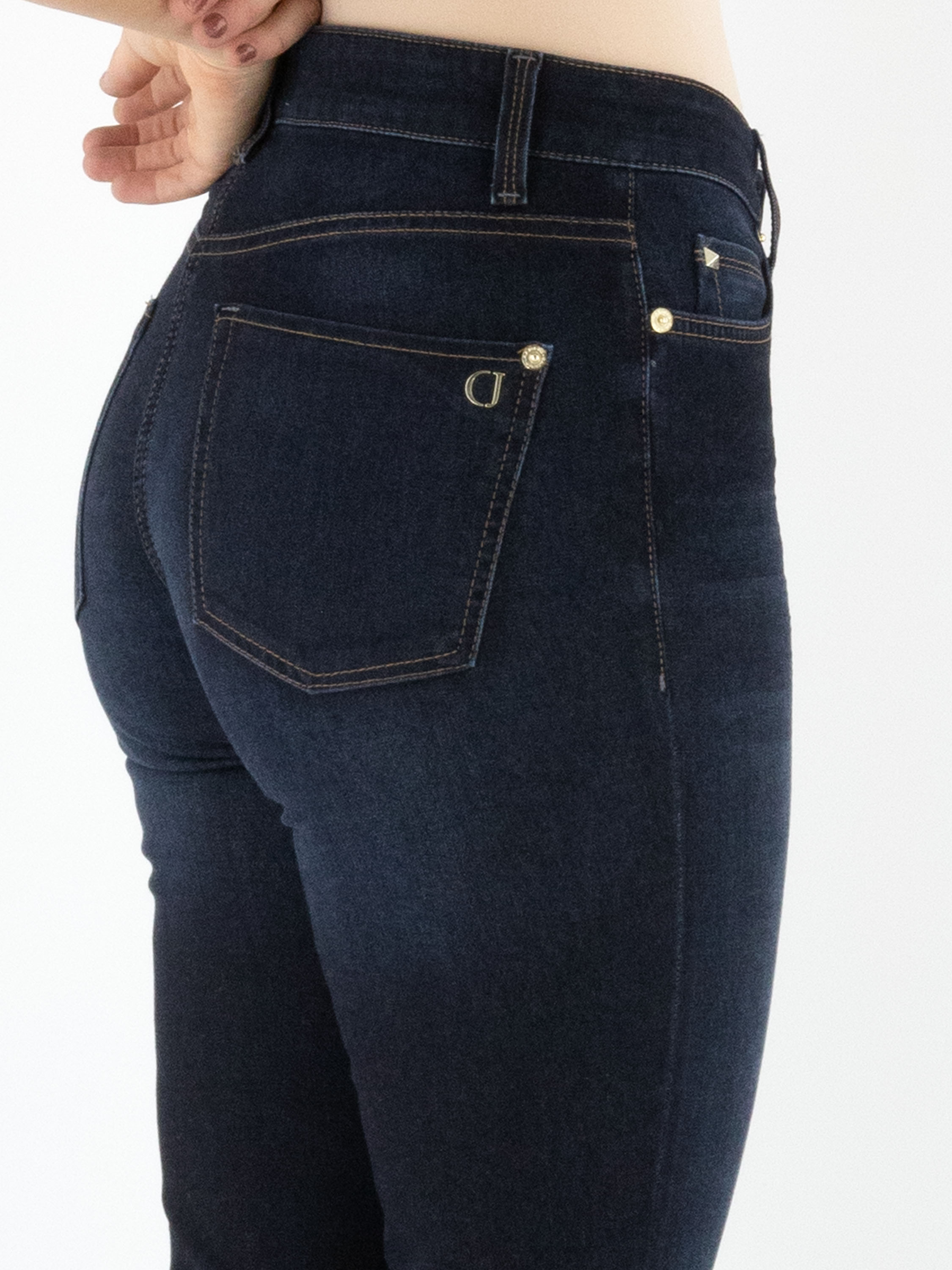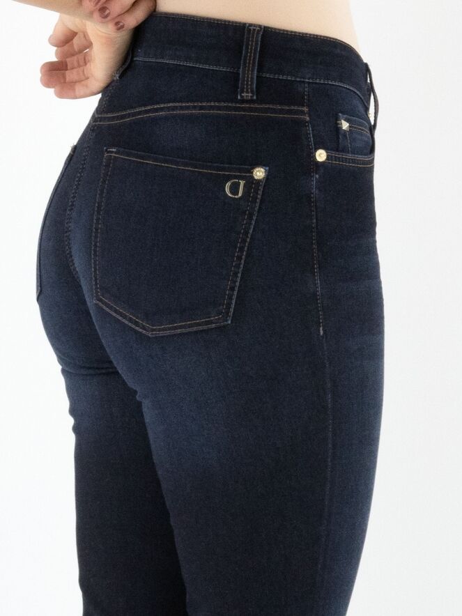 Een flared dark denim jeans van Cambio. Het model is uitgevoerd in een klassiek 5-pocket design en kan op 30 graden worden gewassen.