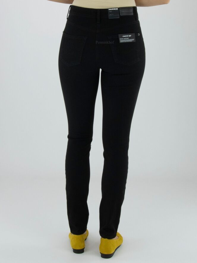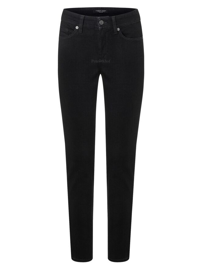 Een jeans van Cambio in de kleur zwart. De jeans is in een 5 pocket model en mag op 30 graden worden gewassen.