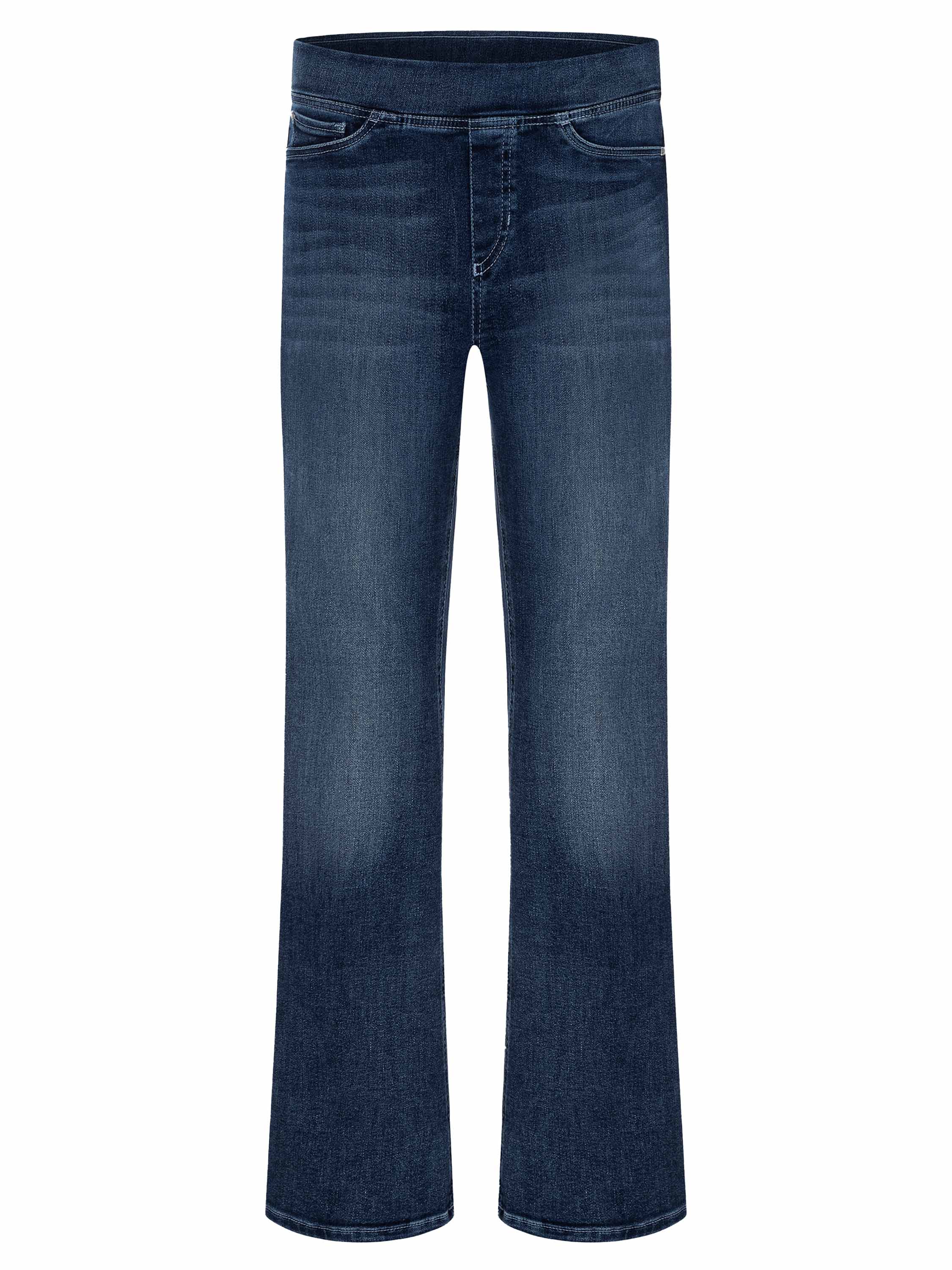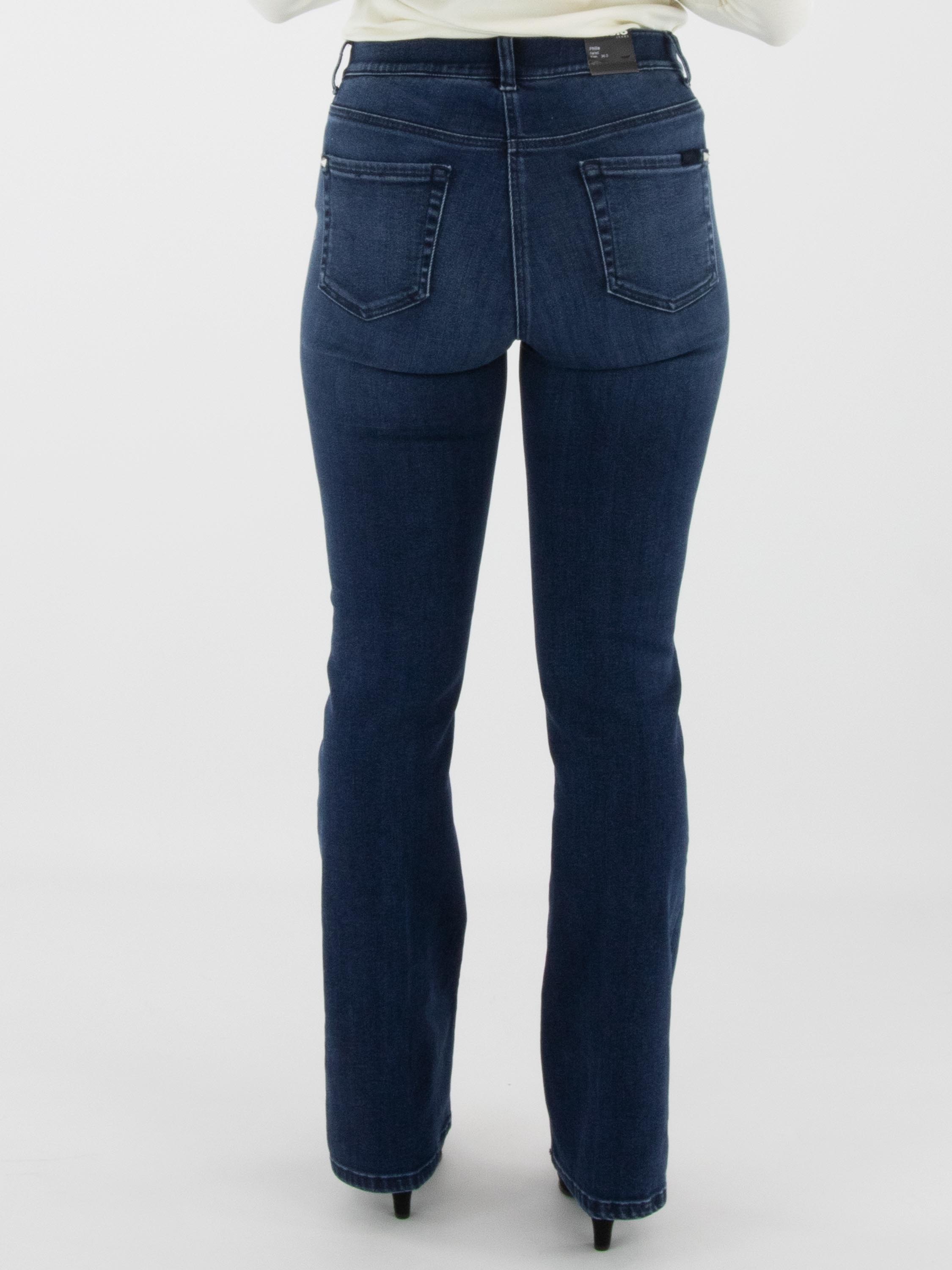 Een flared jeans van Cambio in een basic jeansblauwe kleur. De broek is uitgevoerd in een 5-pocket model en kan op 30 graden worden gewassen.