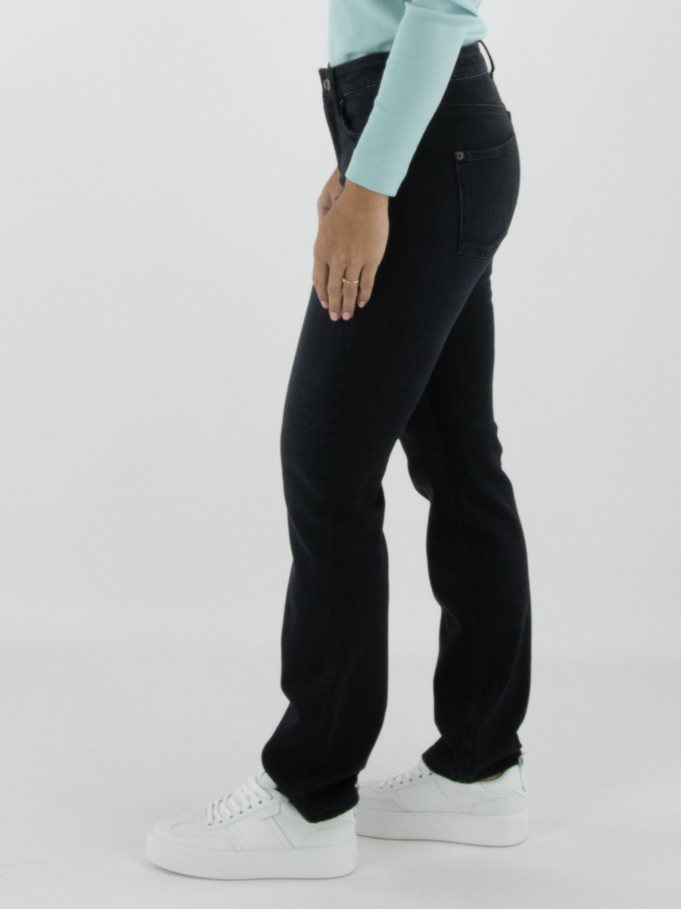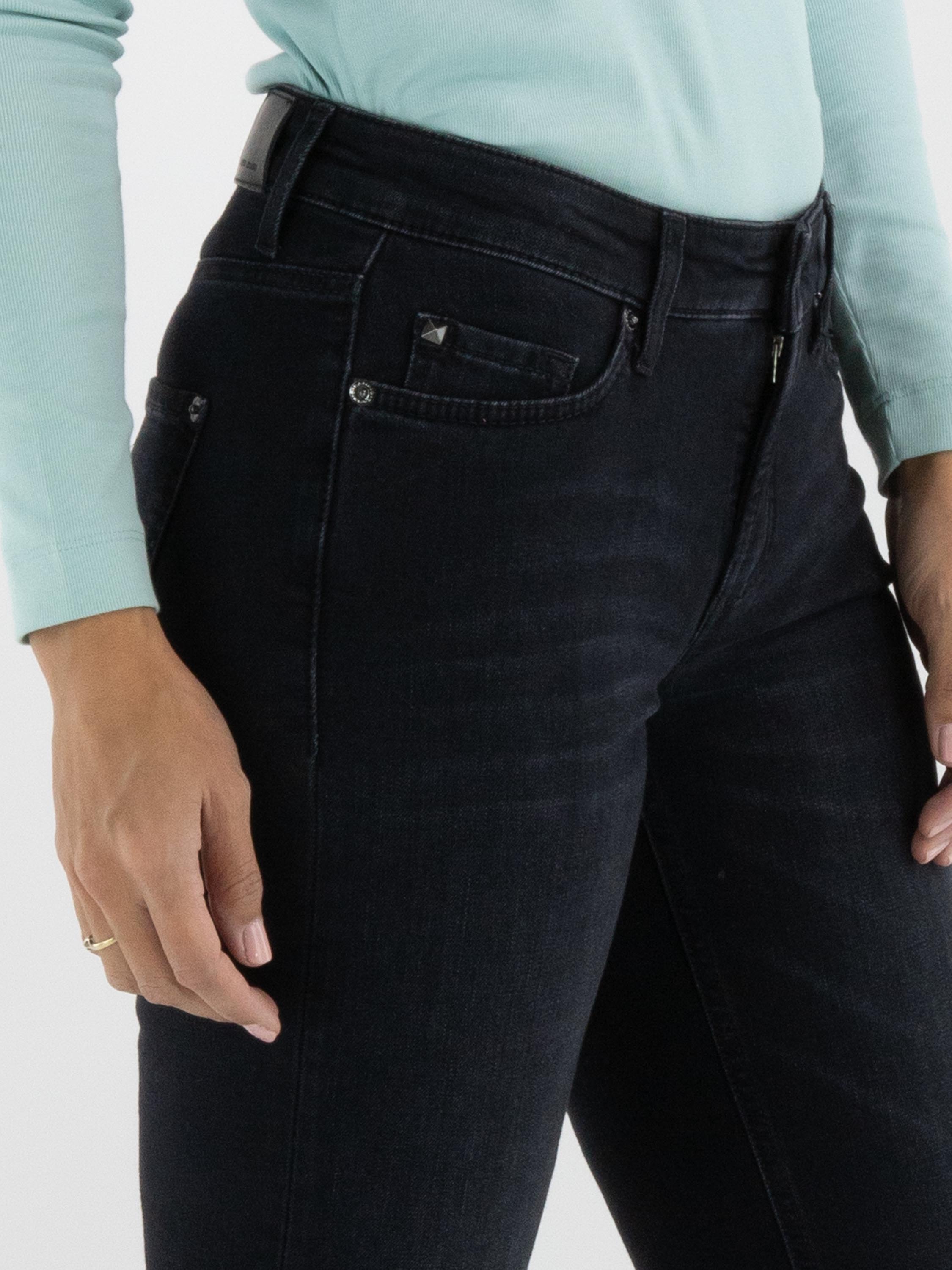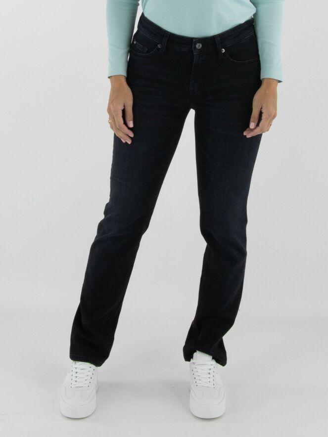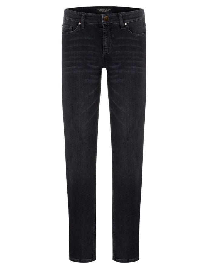 Een jeans van Cambio in de kleur zwart. De jeans is uitgevoerd in een klassiek 5-pocket model en kan op 30 graden worden gewassen.
