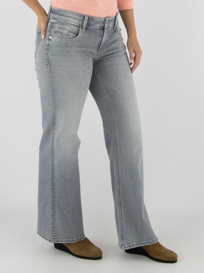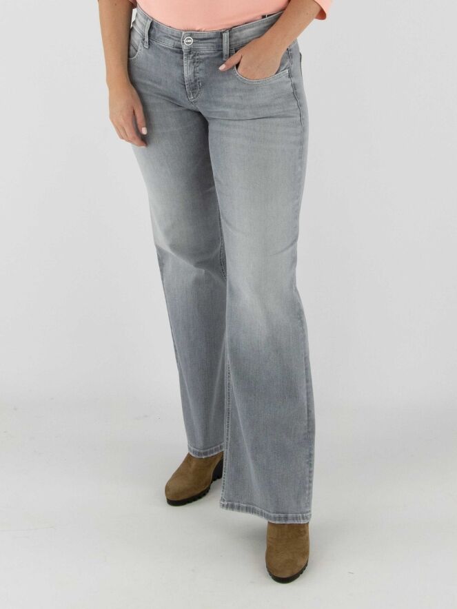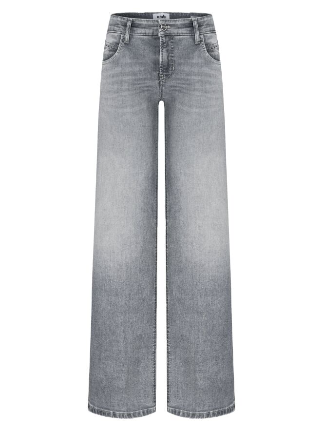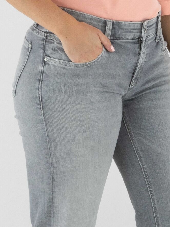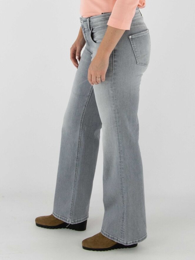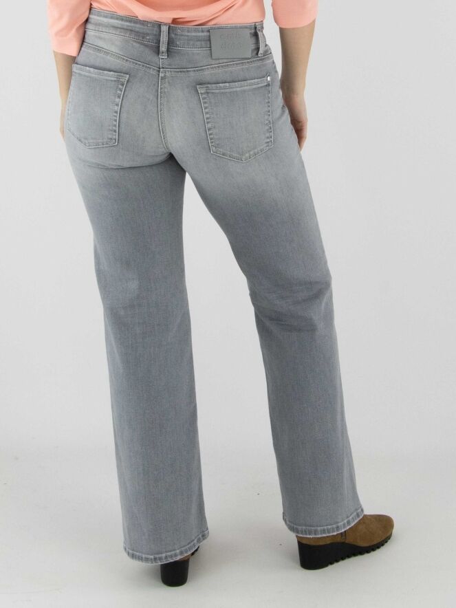 Een jeans van Cambio in een lichtgrijze kleur. De jeans is recht gesneden en uitgevoerd in een 5-pocketmodel. Deze jeans mag op 30 graden worden gewassen.