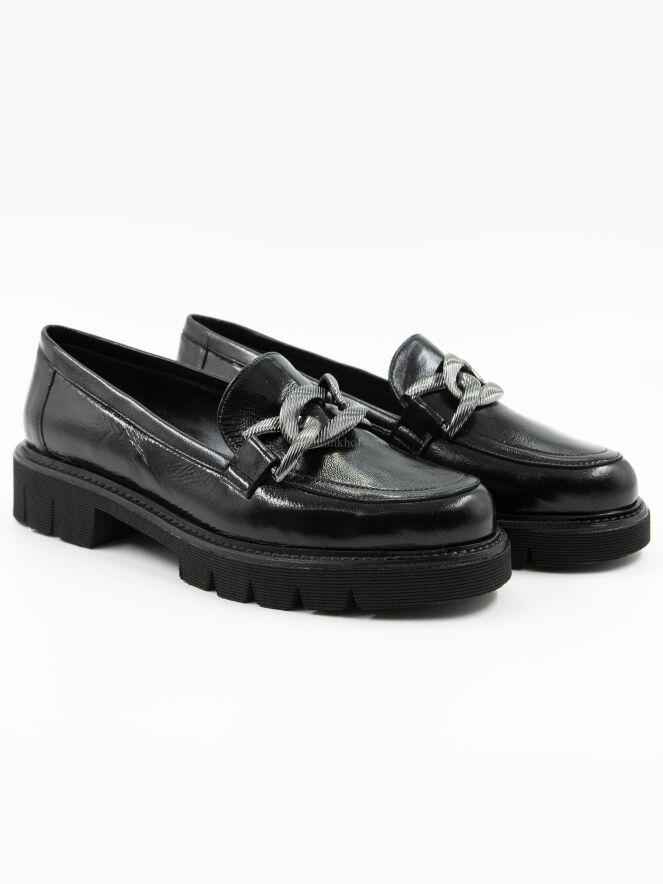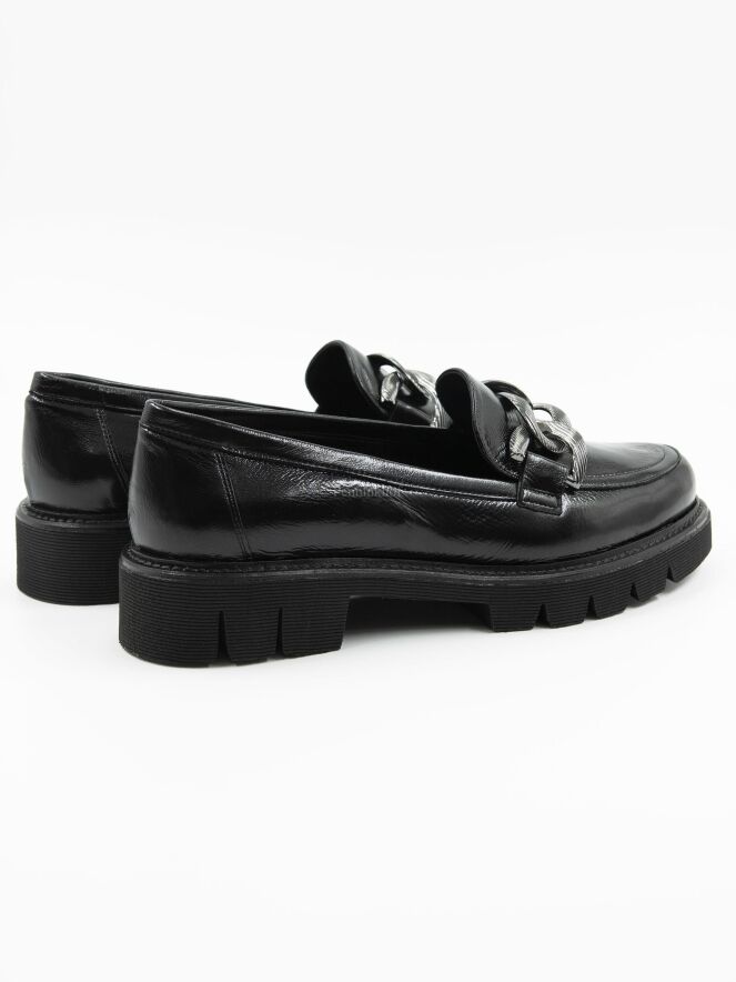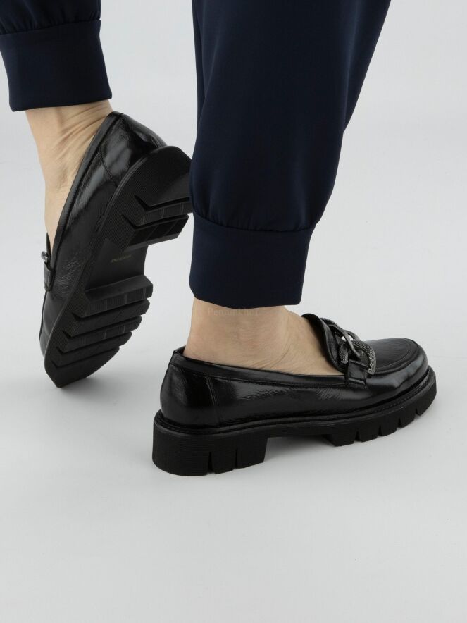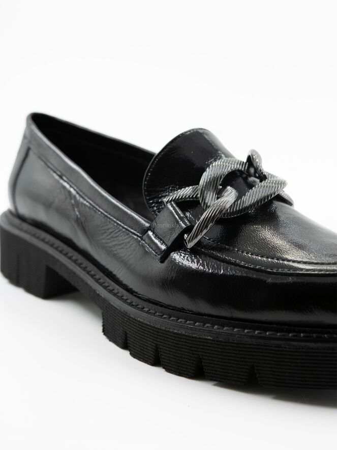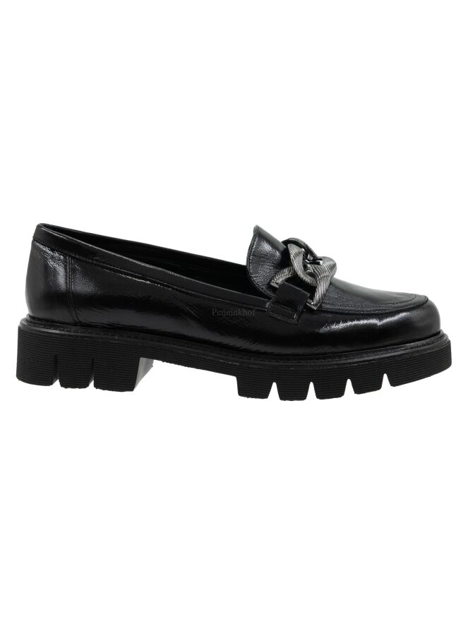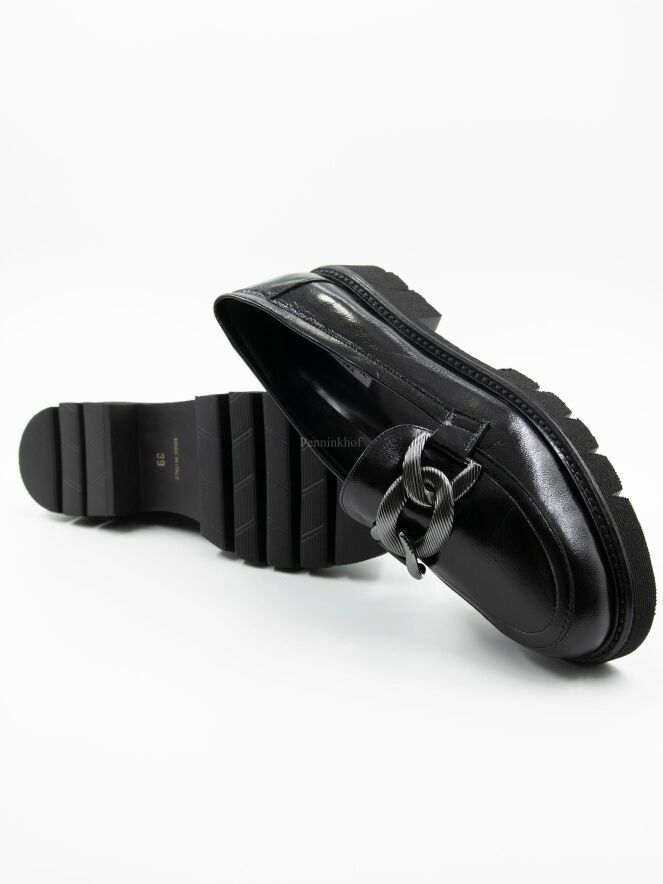 Een instapper van Cervone in een lederen kwaliteit in een zwarte kleur. Op de voorvoet is een gesp in een nikkel kleur. De binnenkant is met leder gevoerd.