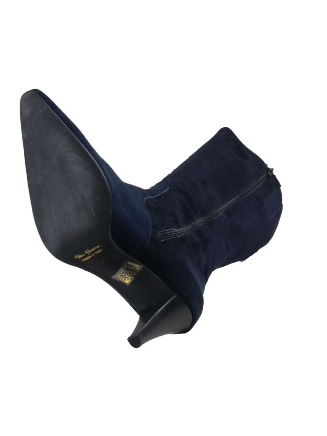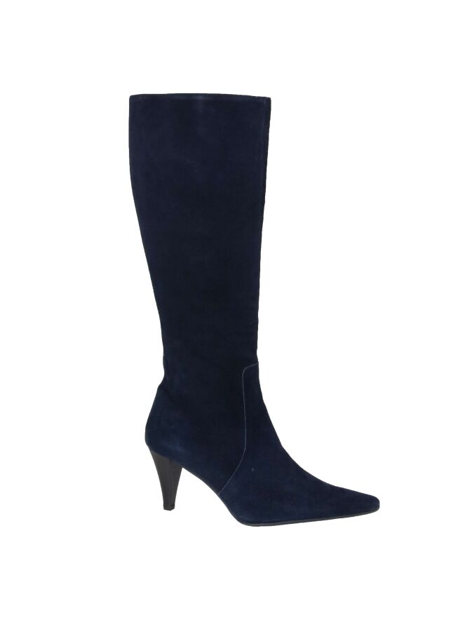 Een laars van het merk Cristian Daniël in de kleur marine blauw. Over de gehele lengte van de schacht is een rits. Aan de bovenzijde van de schacht is een elastieken stuk ingezet. De hoogte van de schacht is 40 cm en de omtrek is 38 cm.