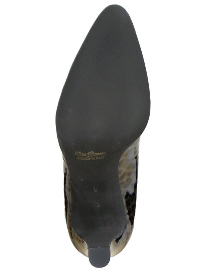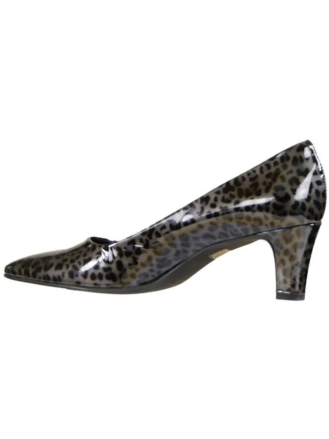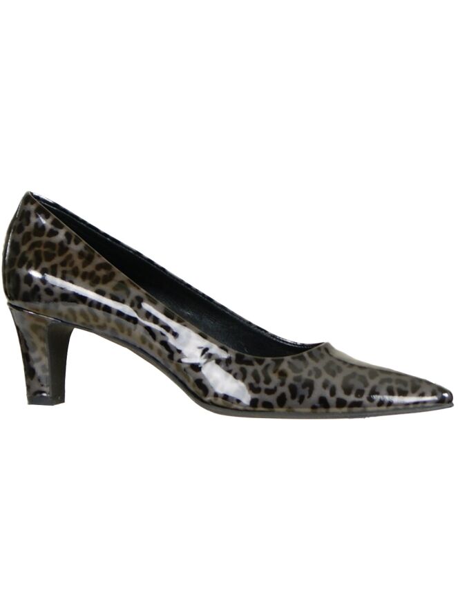 Een pumpje van Cristian Daniël in een panterprint uitgevoerd. Het materiaal is van lakleder. Het hakje is elegant slank. Het pumpje heeft een lederen binnenvoering en de neus is licht spits toelopend.