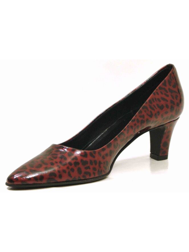 Een pumpje van Cristian Daniël in een panterprint uitgevoerd. Het materiaal is van lakleder. Het hakje is elegant slank. Het pumpje heeft een lederen binnenvoering en de neus is licht spits toelopend.