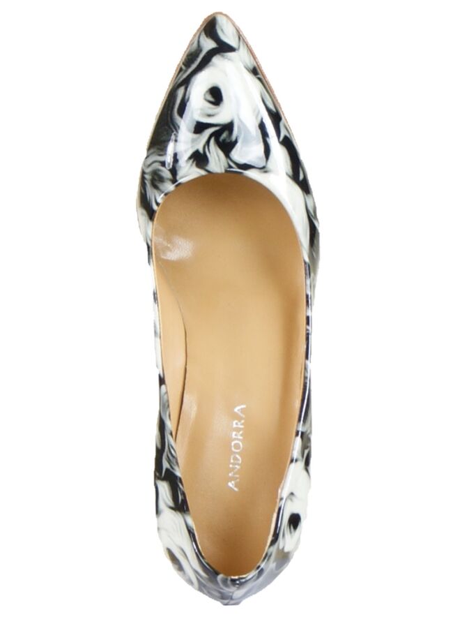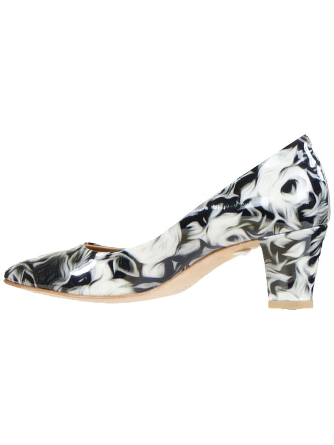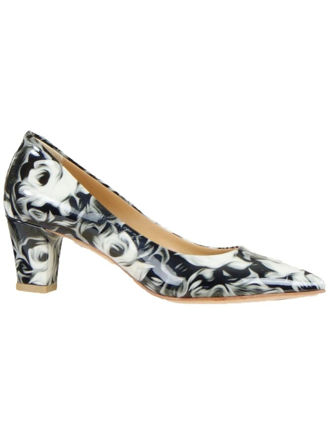 Een pumpje van Cristian Daniël in een rozenprint uitgevoerd. Het materiaal is van lak leder. Het pumpje heeft een lederen binnenvoering.