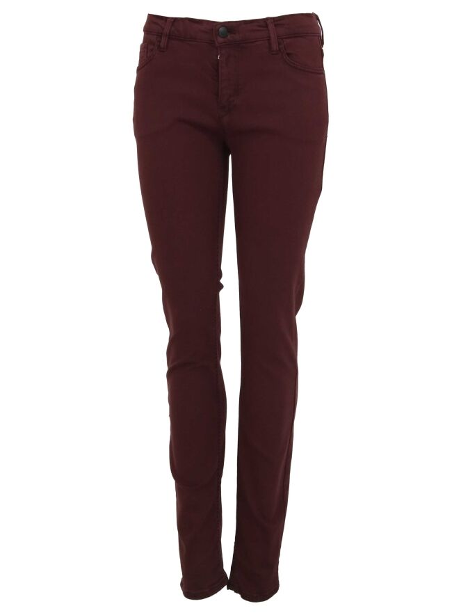 Een lage jeans van Deyk in de kleur prune. De jeans is in een 5 pocket model. Deze jeans mag op 30 graden worden gewassen.