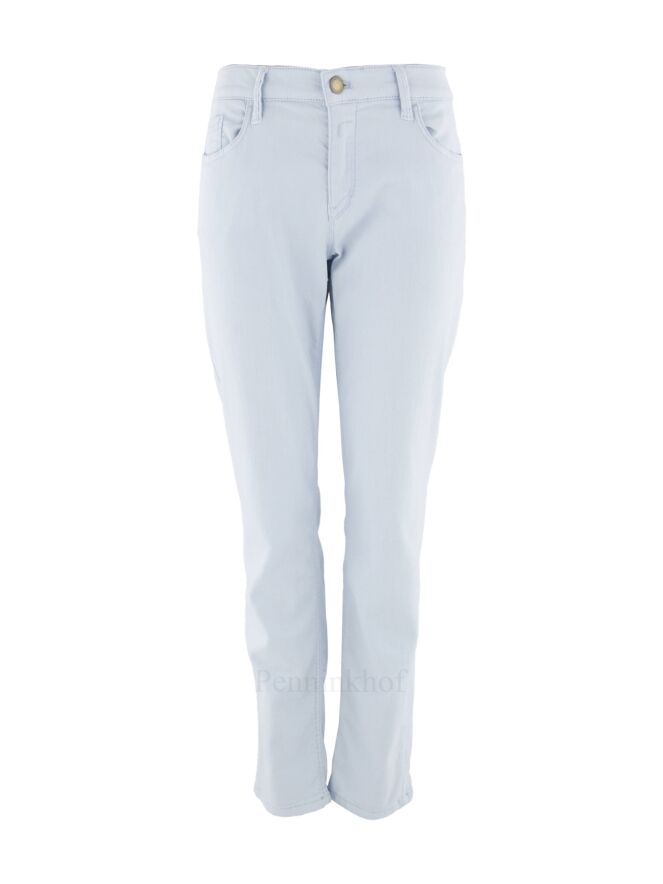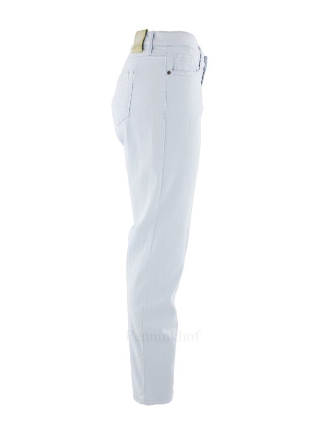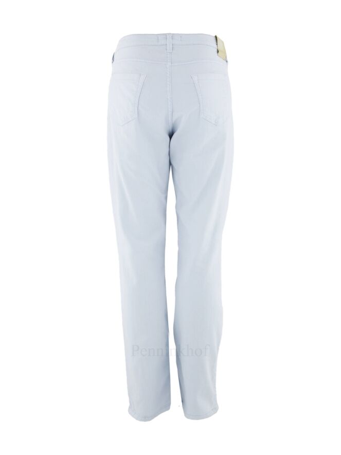Een broek van Deyk in een ijsblauwe kleur, uitgevoerd in een 5-pocketmodel. De pantalon is slank gesneden en mag op 30 graden worden gewassen. Let op: de maten van deze broek worden weergegeven in inchmaten.