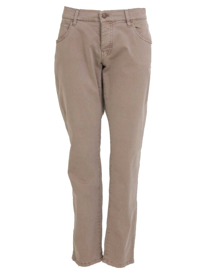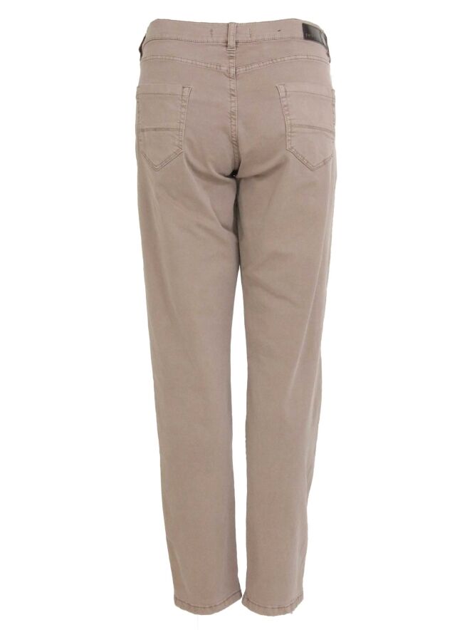 Een broek van Deyk in een 5 pocket model en uni van kleur. Onder de knie is een lichte schaving in de stof verwerkt. De pantalon heeft een kleine omslag. De broek mag op 30 graden worden gewassen.