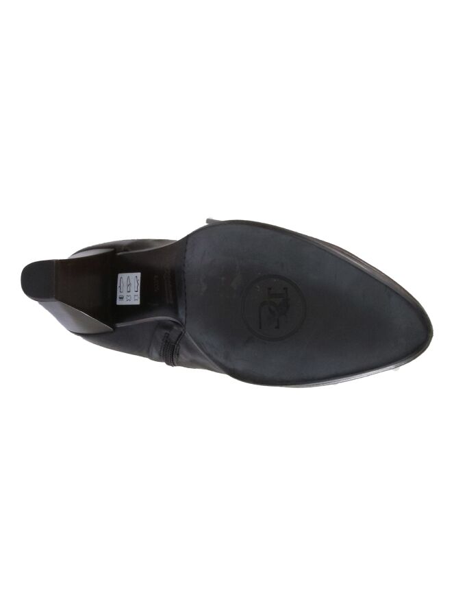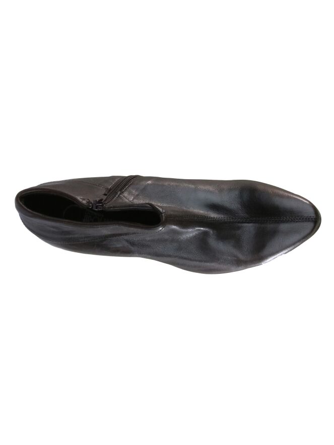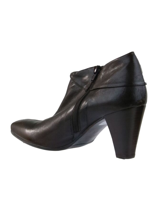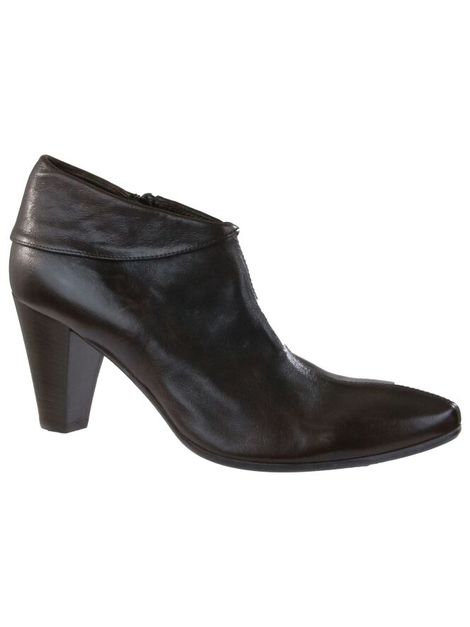 Een kort laarsje van Donna Carolina in een mokka bruine kleur. Langs de schacht is een omslag naar de hiel toe. Het laarsje heeft een rits aan de binnenzijde. De binnenkant is met leder gevoerd.