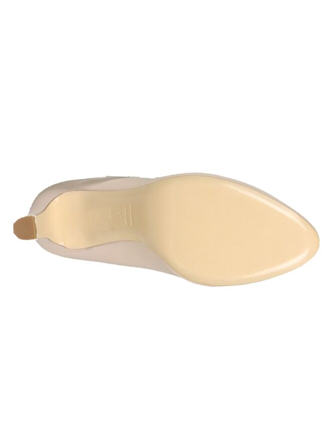 Een pump van Evaluna in de kleur nude. De pump is in zacht nappa leder en heeft een slanke ronde neus. De elegante hak is in hetzelfde leder als de pump bekleed. De binnenkant is met leder gevoerd.