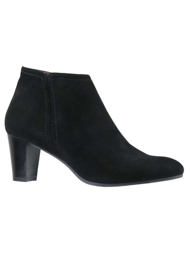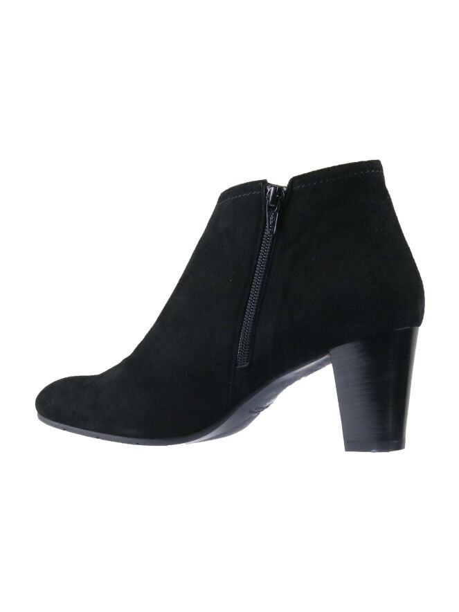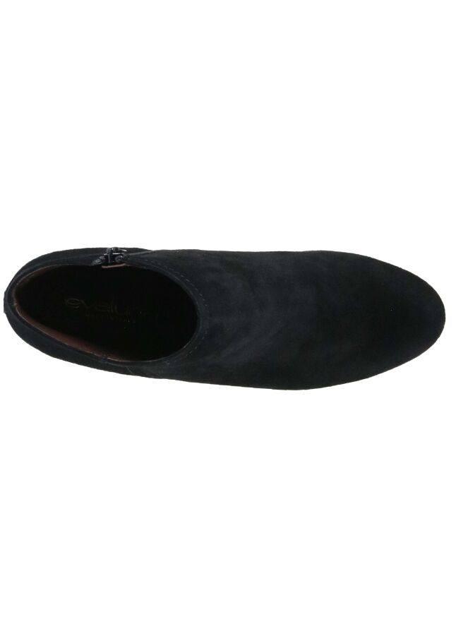 Een enkellaarsje van Evaluna in de kleur zwart. Het laarsje heeft een ronde neus. Aan de binnenzijde is een rits. De binnenkant is met leder gevoerd.