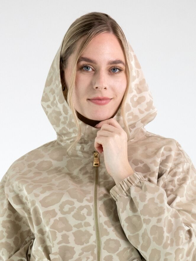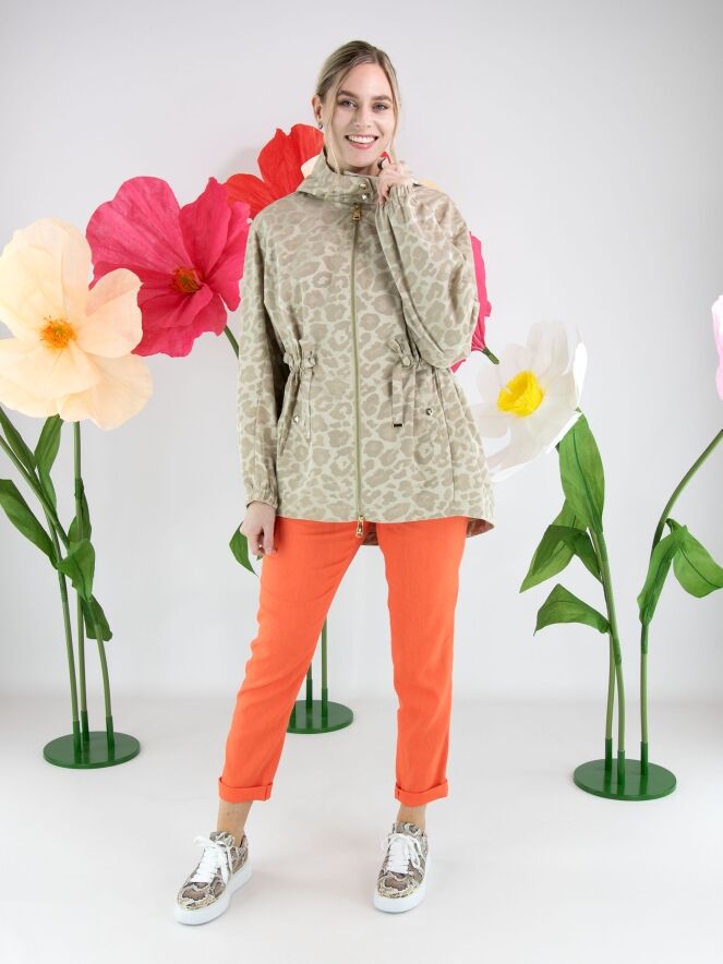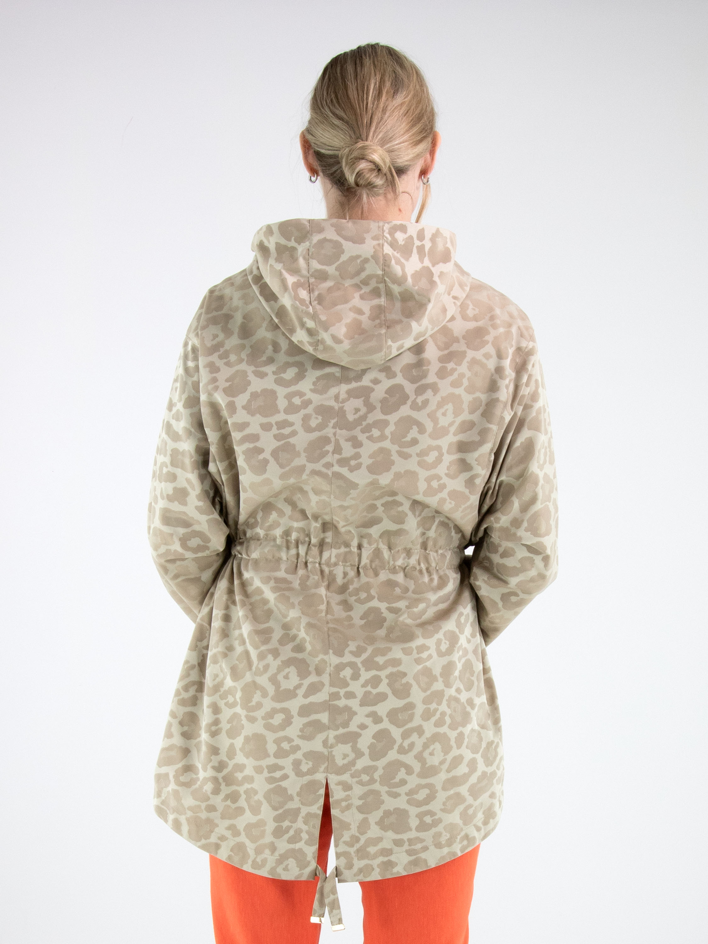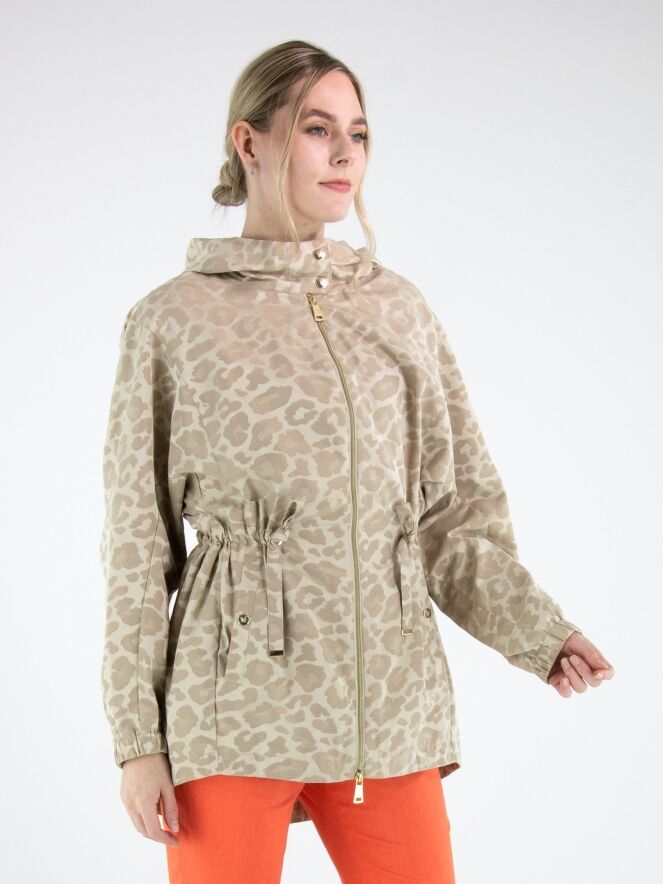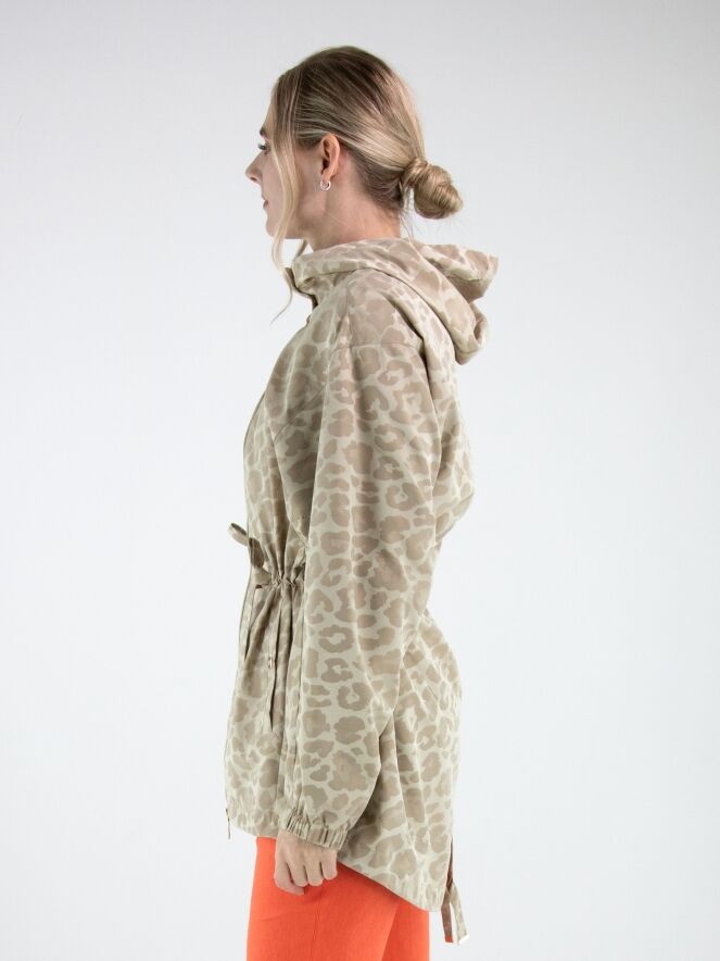 Parka van Fuchs Schmitt in een ton-sur-ton panterprint in meerdere tinten zand en beige. De parka is voorzien van een capuchon en een goudkleurige ritssluiting, wat zorgt voor een stijlvolle en eigentijdse uitstraling. Ter hoogte van de taille is een koord in tunnelverwerking aangebracht waarmee een subtiel plooieffect kan worden gecreëerd en de taille naar wens kan worden geaccentueerd. Onder dit koord bevinden zich steekzakken. De lange mouwen zijn afgewerkt met een elastische boord. Deze exclusieve parka coat kan op 30 graden worden gewassen.