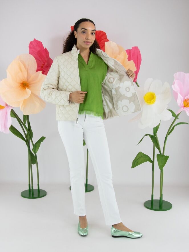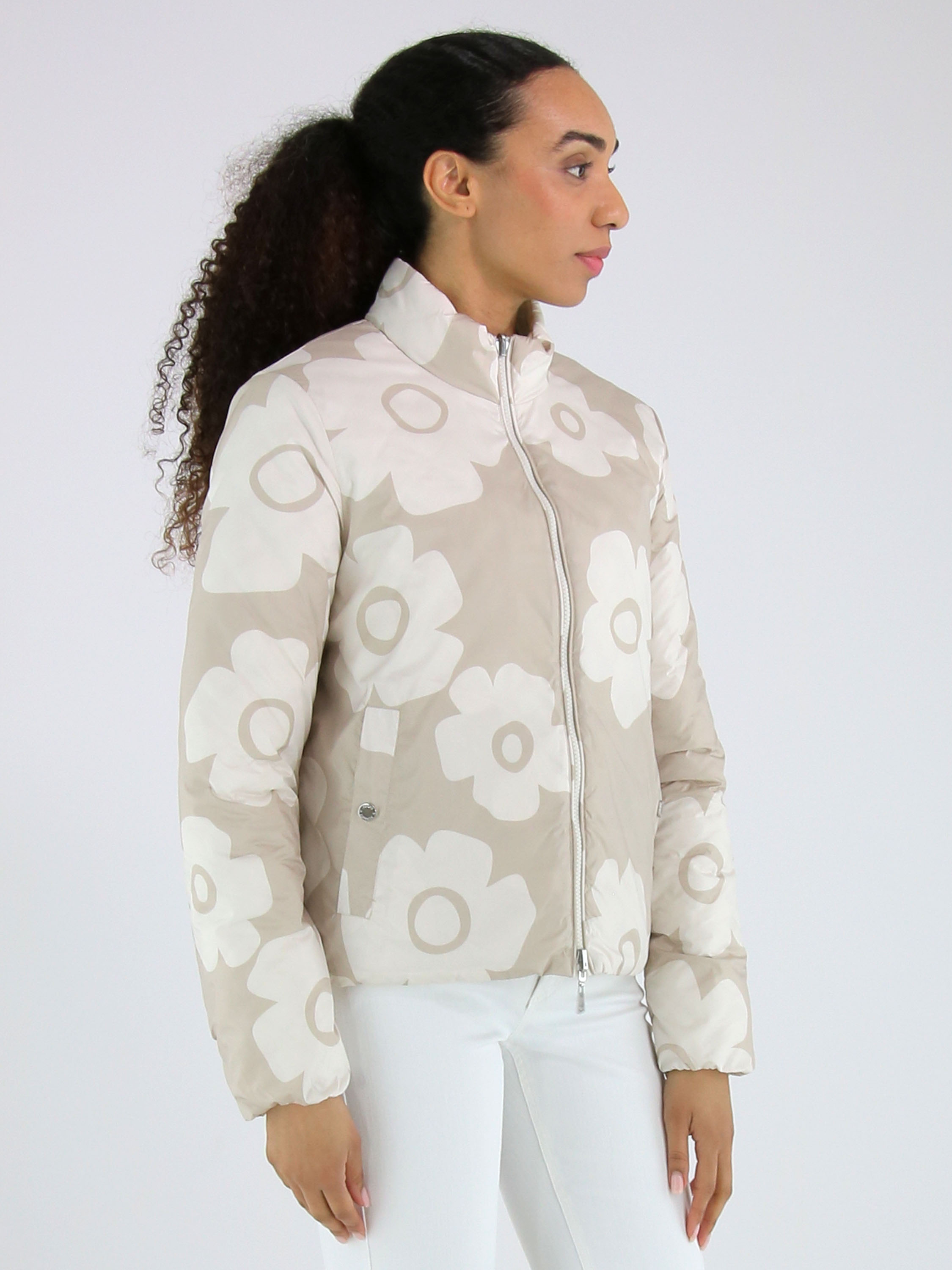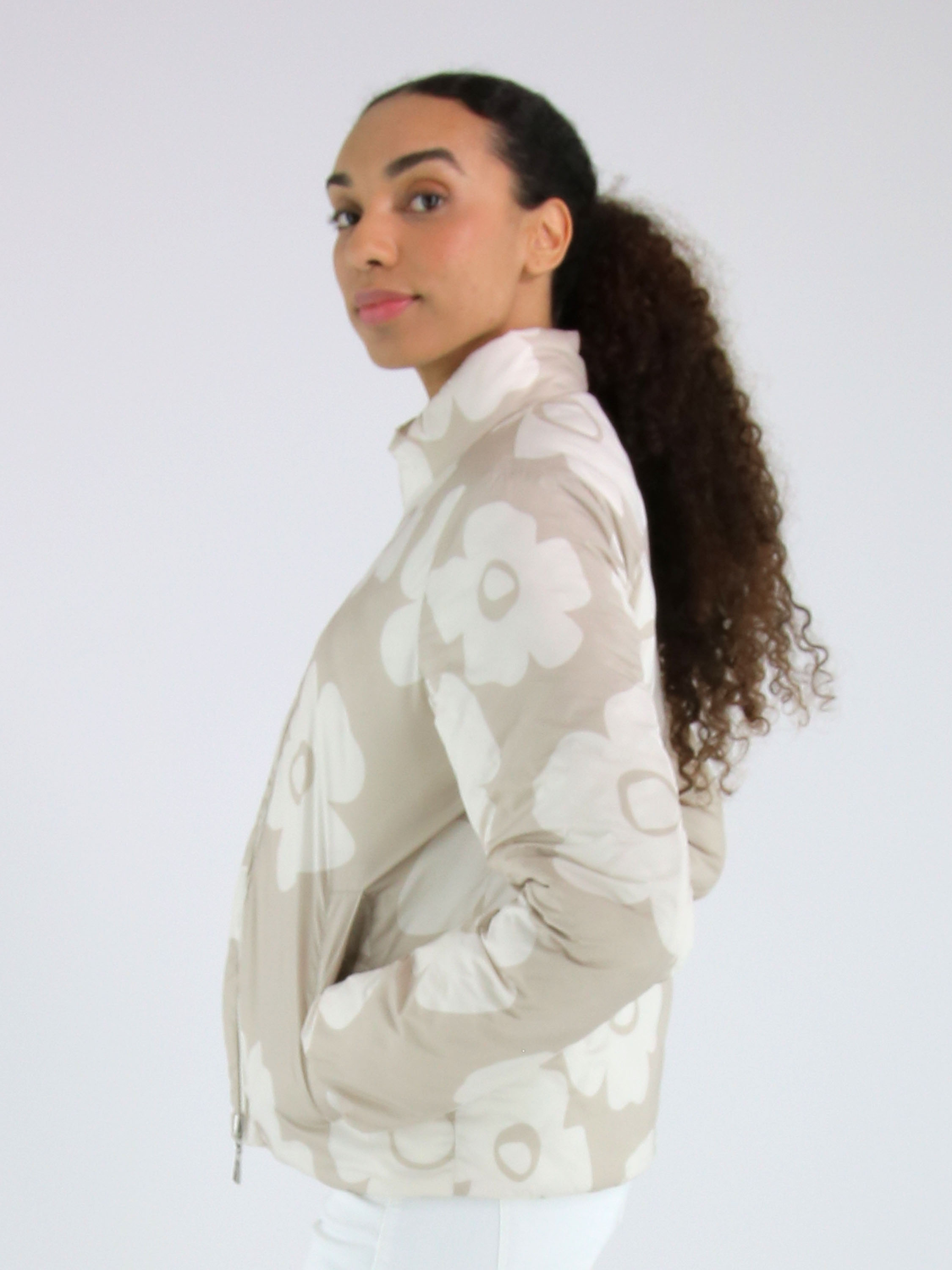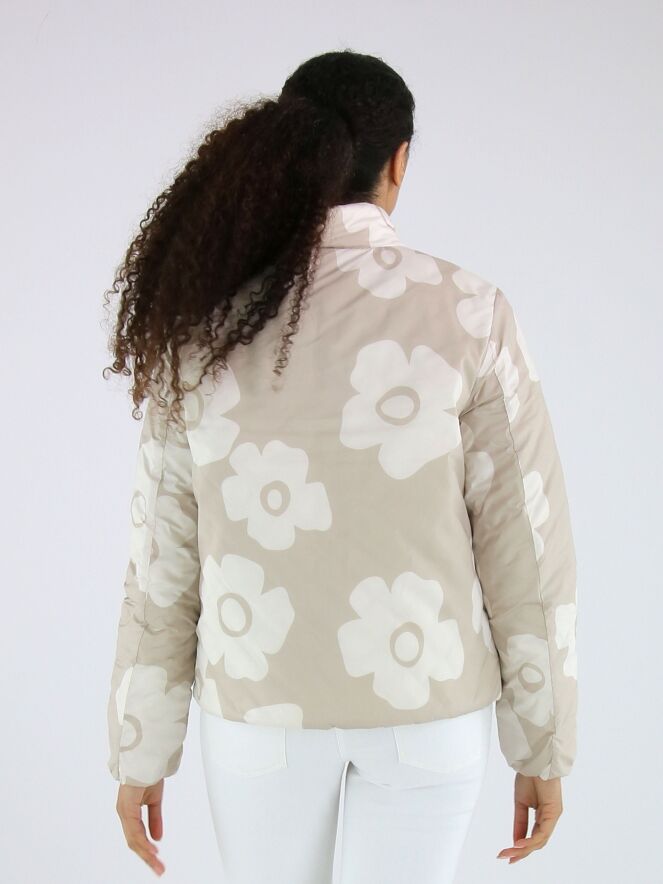 Coat van Fuchs Schmitt in een elegante bloemenprint in twee tinten beige. De coat heeft een ritssluiting en is voorzien van praktische steekzakken, wat zorgt voor een comfortabele en stijlvolle uitstraling. Deze exclusieve damescoat kan op 30 graden worden gewassen.